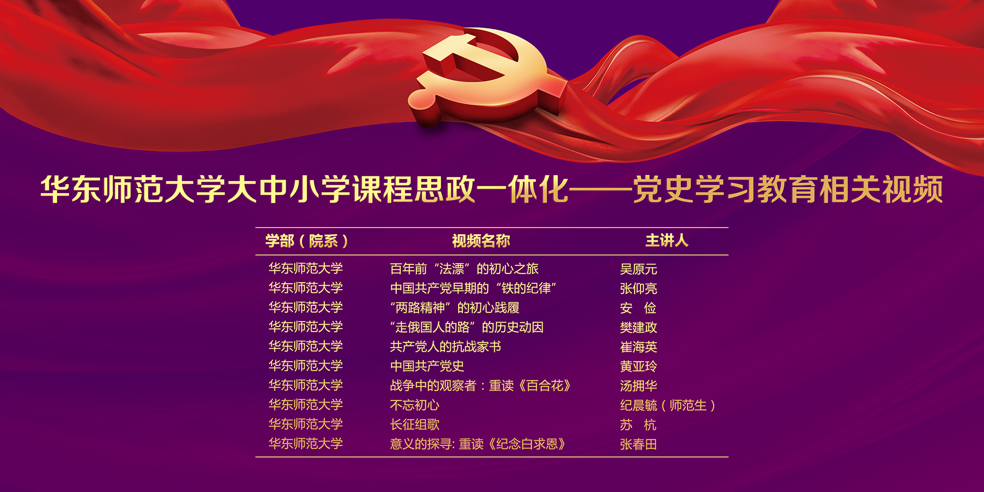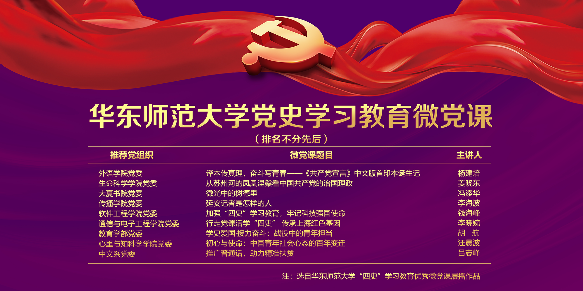 思政课是立德树人“关键课程”,讲好党的百年故事、发挥党史育人作用,首先要建好思政课主阵地。完美(中国)官方充分发挥学校建设全国重点马克思主义学院、上海高校示范马克思主义学院、上海市课程思政领航高校及学校人文哲社学科优势,推出了党史学习教育系列课程。
