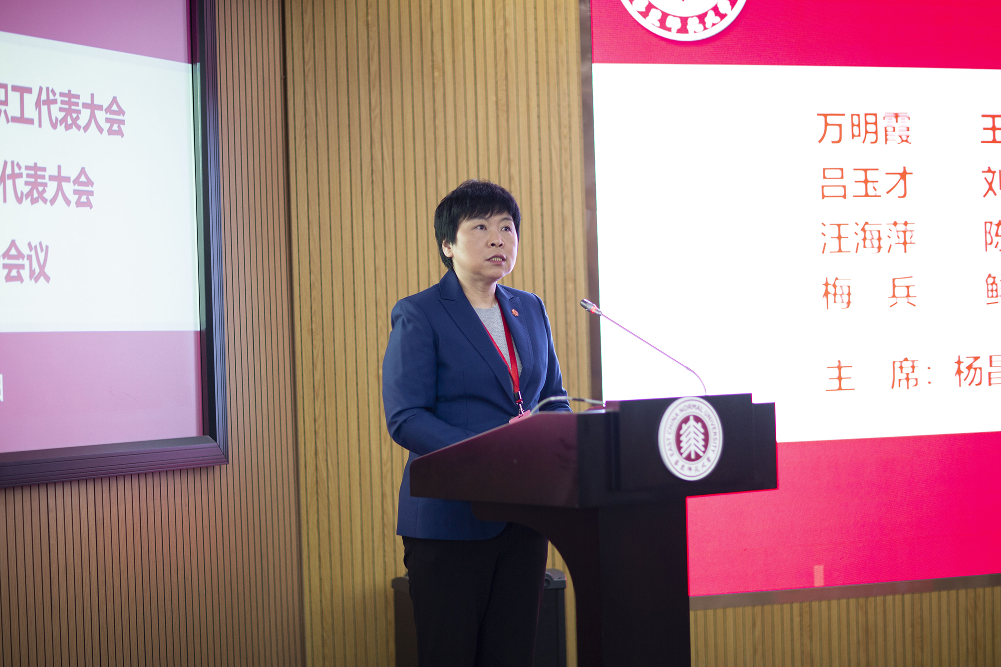 梅兵希望各位代表一如既往,满怀对学校事业的深厚感情,不负全校教职工的重托,立足大局,着眼长远,切实履行好自己的权利和职责,努力将推动一流大学建设与维护教职工合法权益结合起来,将加强工会自身建设与促进教职工全面发展结合起来,凝心聚力,推动发展。