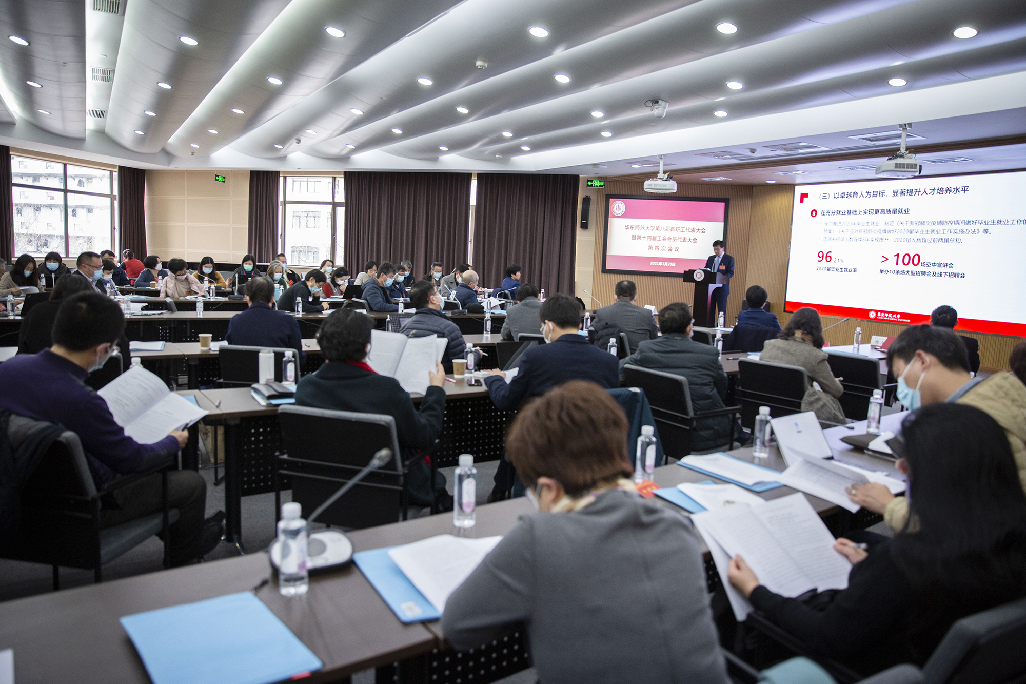 1月20日下午,在庄严的国歌声中,完美网页版第八届教职工代表大会暨第十四届工会会员代表大会第四次会议(以下简称“双代会”)召开。根据疫情常态化防控要求,本次大会通过线上线下相结合的方式设10个分会场在两个校区进行。