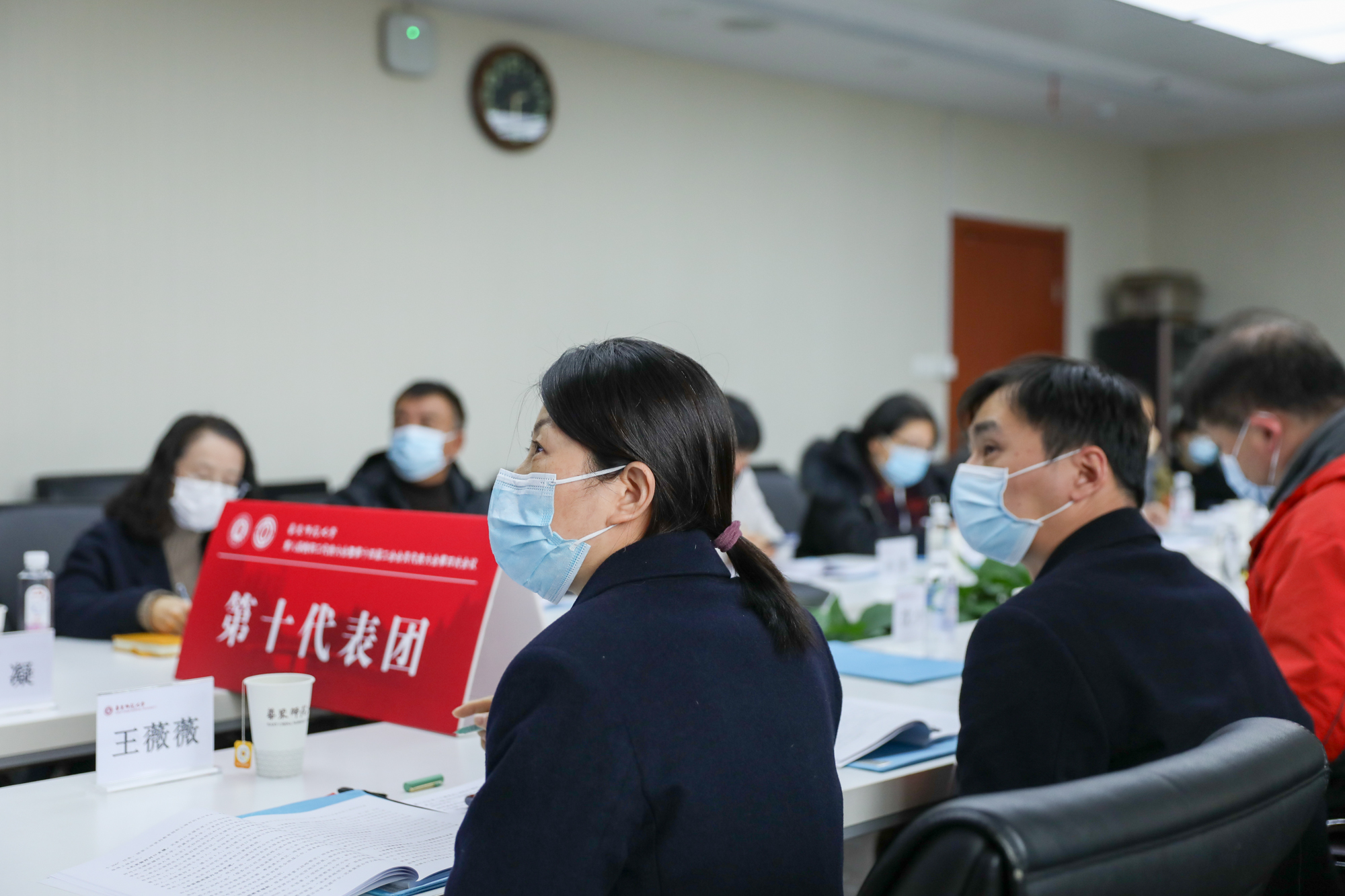 大会结束后,在各代表团团长的主持下,与会代表认真审议行政工作报告、校工会工作报告、工会财务工作和经审工作报告。学校“十四五”发展规划纲要编制工作是与会代表热议的话题,与会代表围绕行政工作报告,结合各自的业务专长和工作实际,积极为学校发展建言献策。