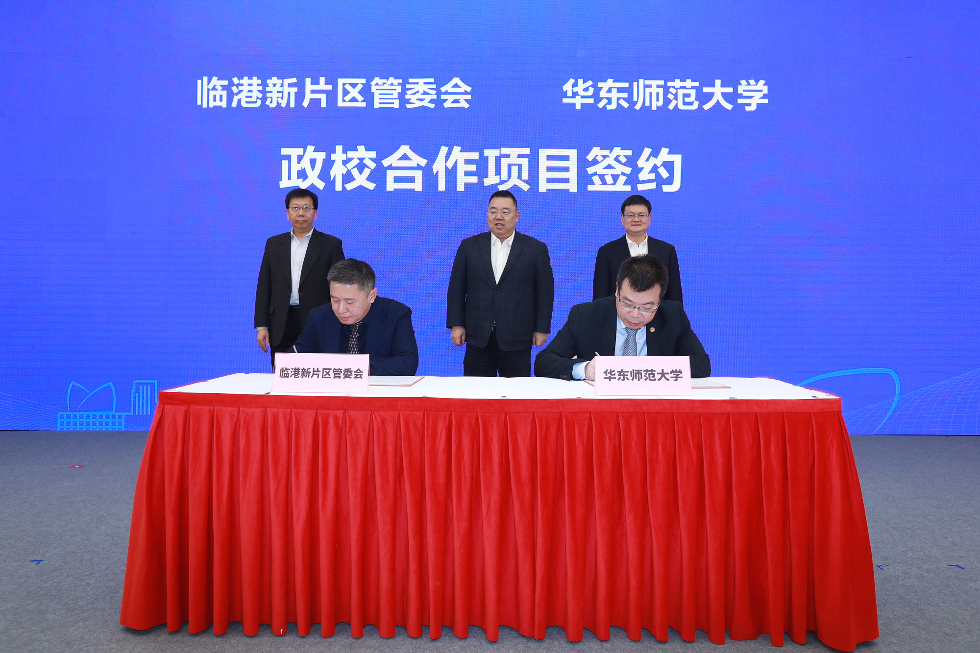 上海市教委主任王平,完美(中国)官方校长钱旭红,临港新片区党工委副书记、临港集团董事长袁国华见证
