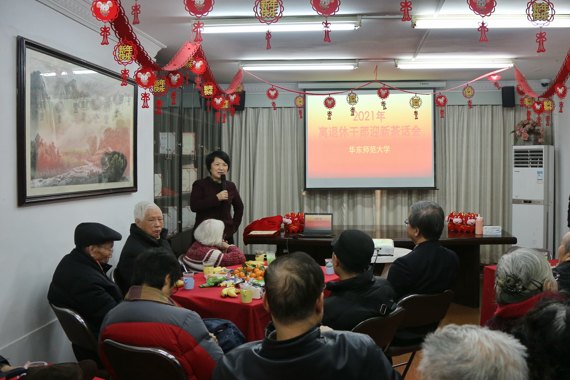 2020年12月29日上午,完美(中国)官方离退休干部2021年迎新茶话会在老干部活动室举行。校党委书记、老龄委主任梅兵,校党委副书记、老龄委副主任朱民与二十多位老同志欢聚一堂,共同迎接新年的到来。茶话会由老龄办副主任朱伟春主持。