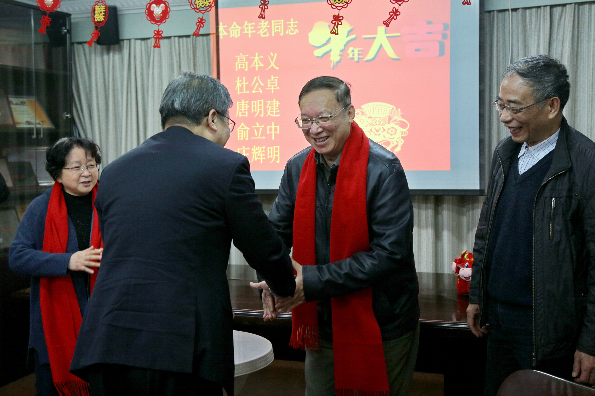 为属牛的老同志佩戴红围巾