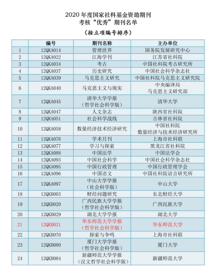 2020年度国家社科基金资助期刊考核“优秀”名单