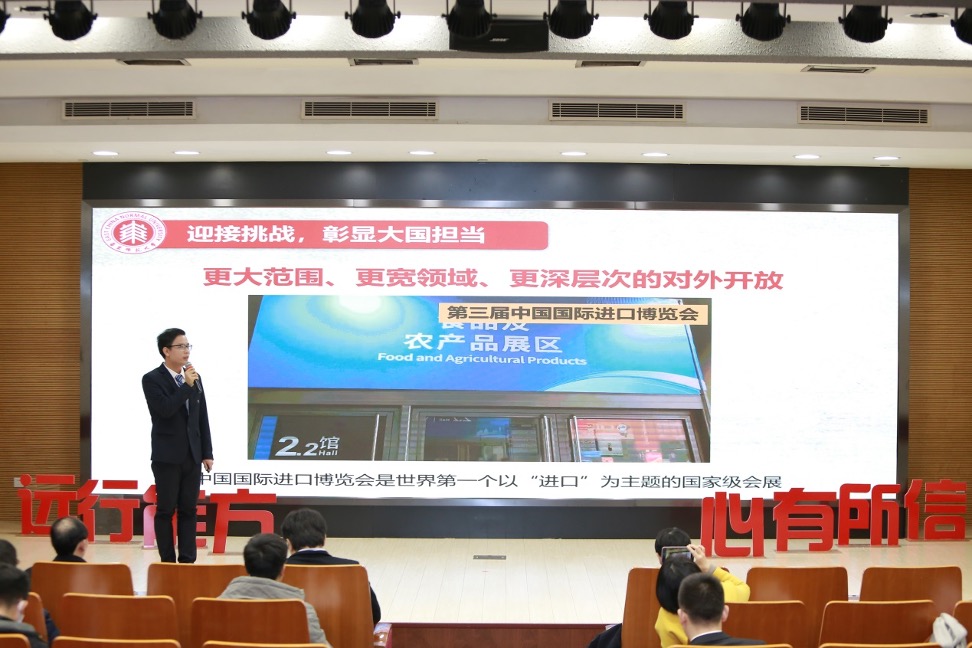 林铭亮的《“勇立潮头,时代担当”:百年变局下中国的对外开放》微课程以2020年进博会的顺利召开为切入点,展示“百年未有之大变局”中新时代青年的时代使命,展示了当今中国在世界格局变化的挑战与机遇,指出青年学子要在从中国富起来走向强起来的道路上,树立远大理想,肩负时代使命,以全球发展视野,为世界和平与发展提供“中国方案”,让更多的世界人民认识中国、走进中国、爱上中国。