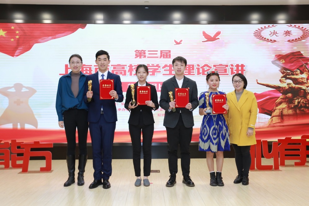 吴翊平(左三)荣获第三届上海市高校学生理论宣讲微课程决赛二等奖