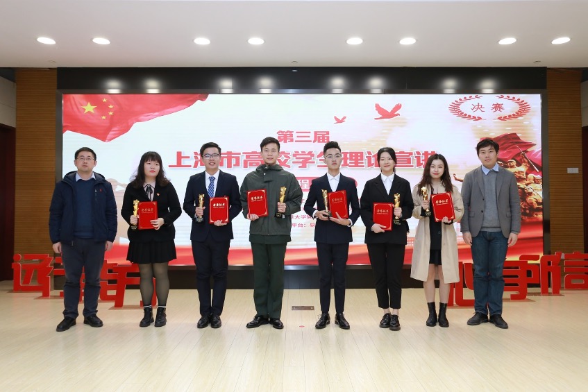 林铭亮(左三)荣获第三届上海市高校学生理论宣讲微课程决赛三等奖
