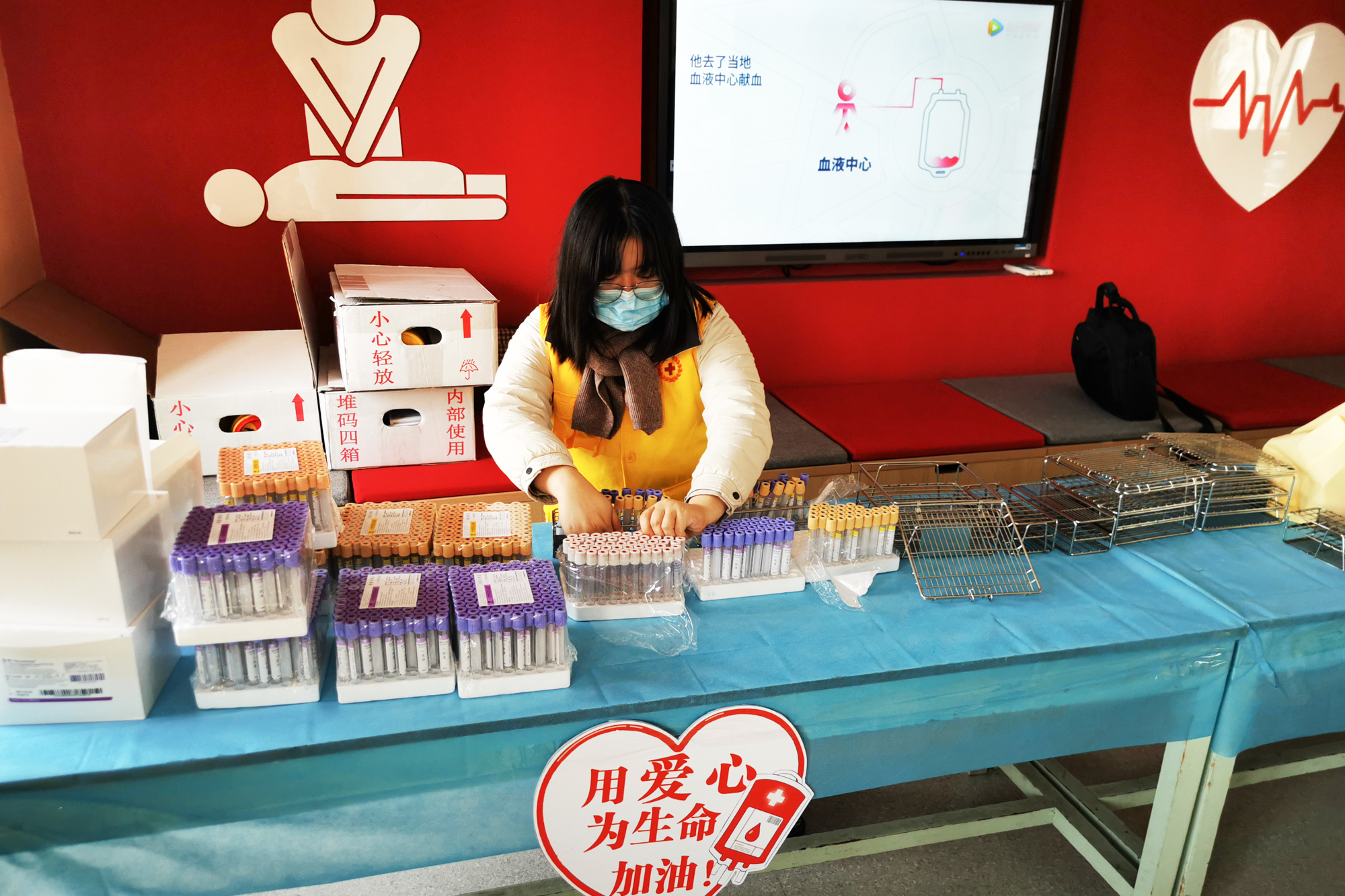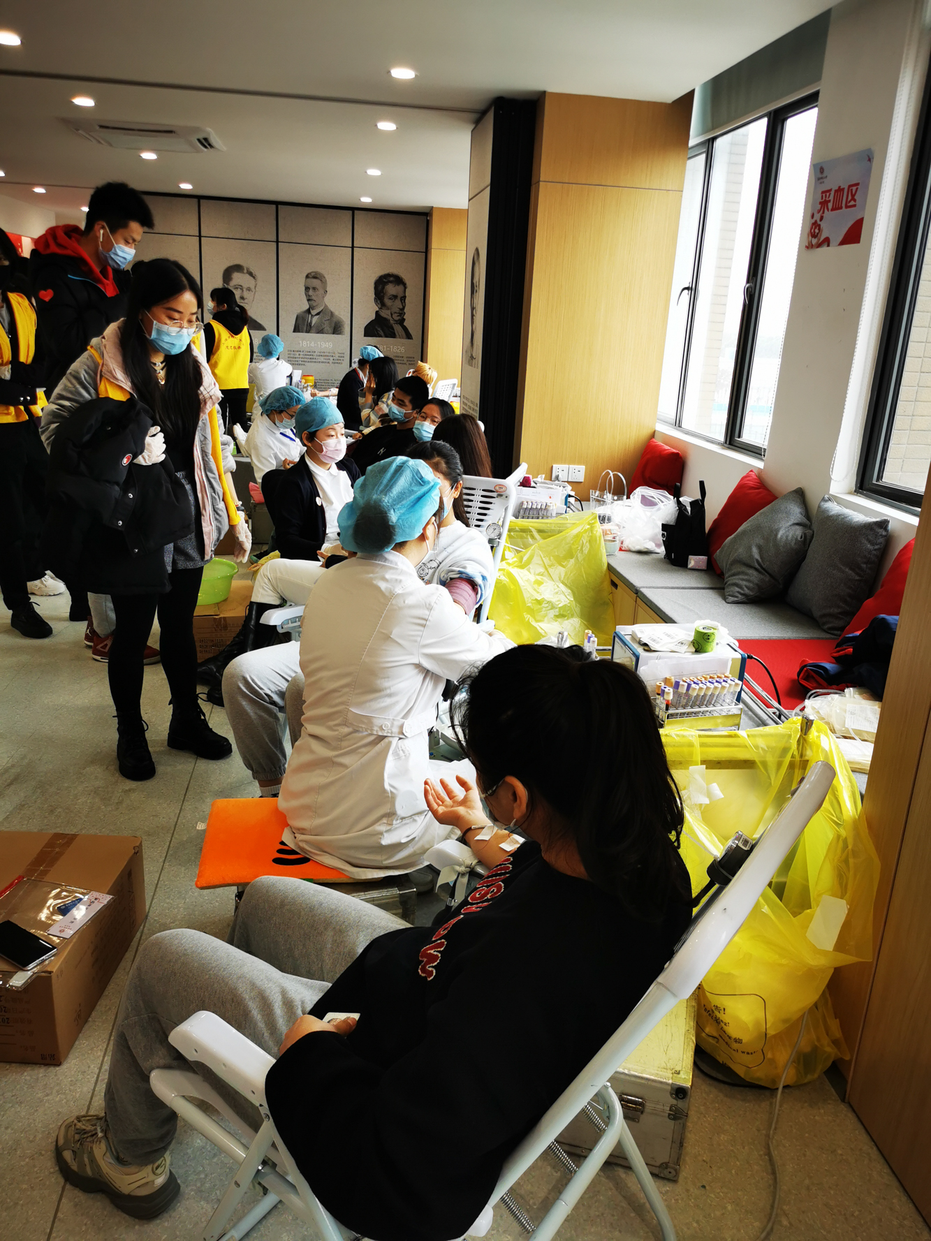献血过程中,无偿献血的师生按照“保持距离、全程戴口罩、测量体温、健康征询及健康检查”的流程,在医务人员的指导下有序的填写资料、初筛化验和抽取血液。献血椅上,献血者在医生指导下,轻轻地握拳、松开,血液带着爱的温度流进血袋,志愿者在旁边暖心陪护,以缓解紧张情绪。留观区医生关切地询问每一位献血的师生,不停的提醒大家时刻注意自己的身体情况,如有不舒服请及时告知。校医院在献血留观区发放献血点心礼包和《献血注意事项》书签等,同时后勤保障部食堂开设了无偿献血营养窗口,以方便献血师生就餐。献血过程中,各院系负责人和辅导员一直在现场陪伴。
