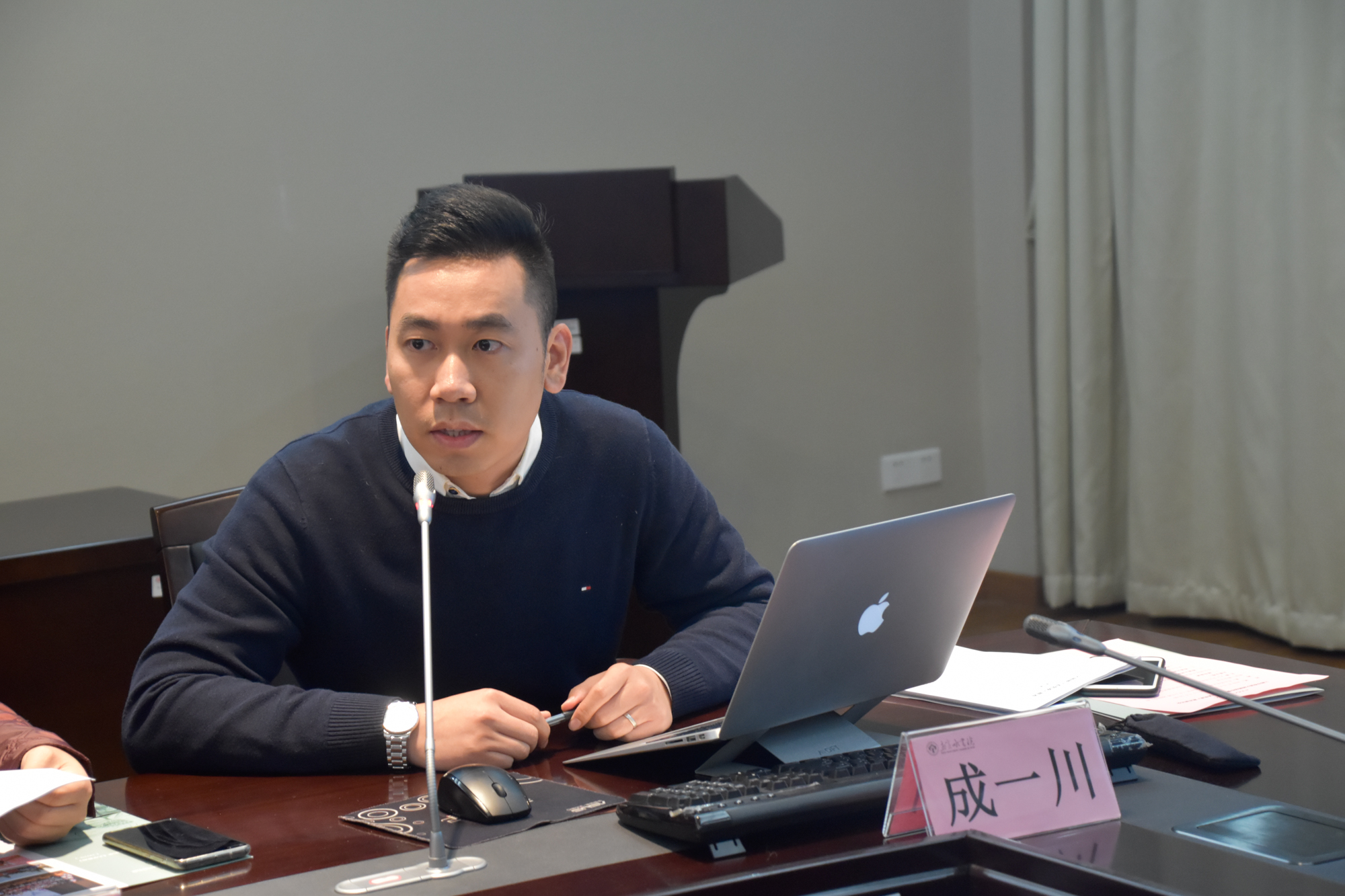 孟宪承书院团委书记、书院话剧队指导老师成一川介绍《孟宪承》的项目概况和剧本梗概