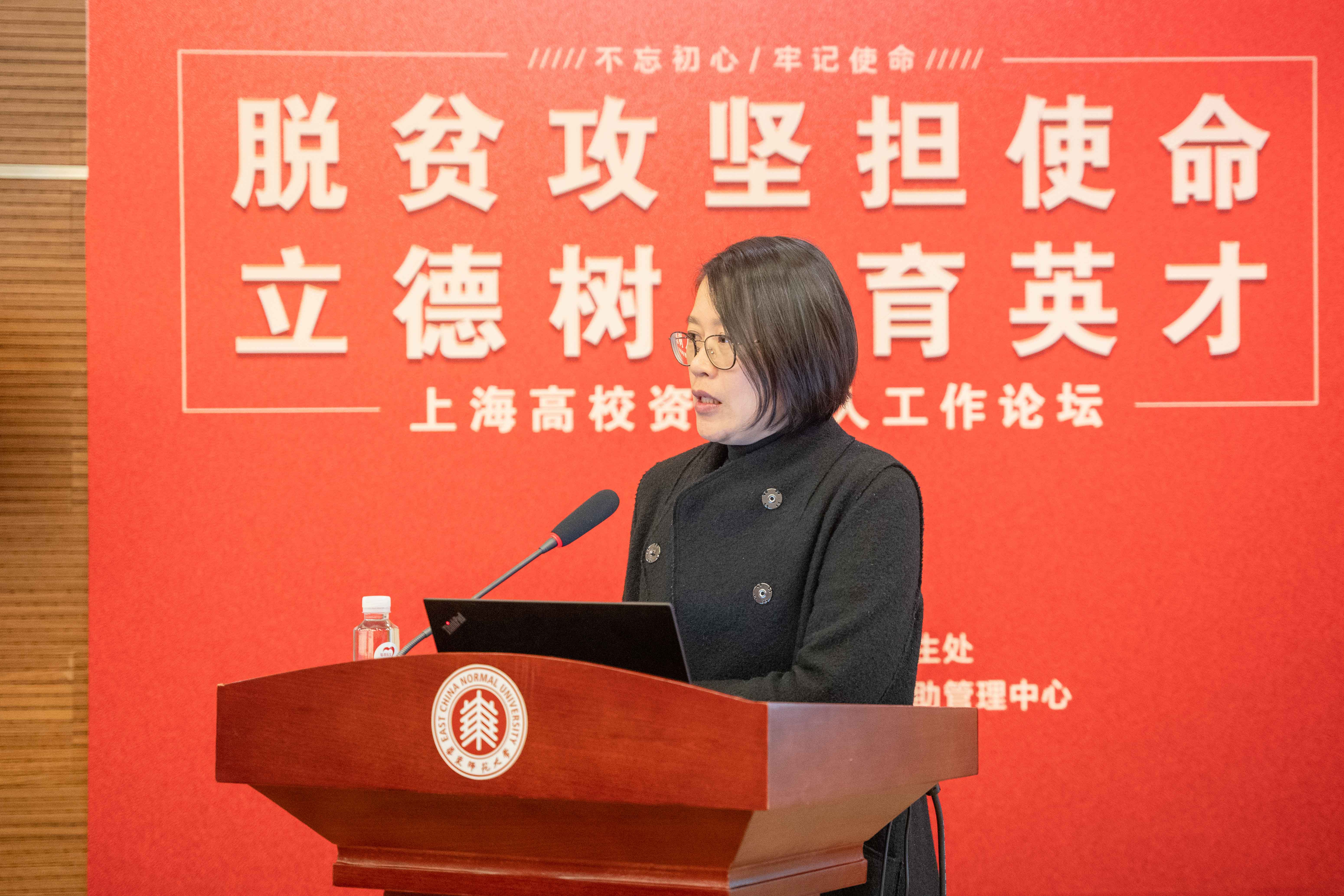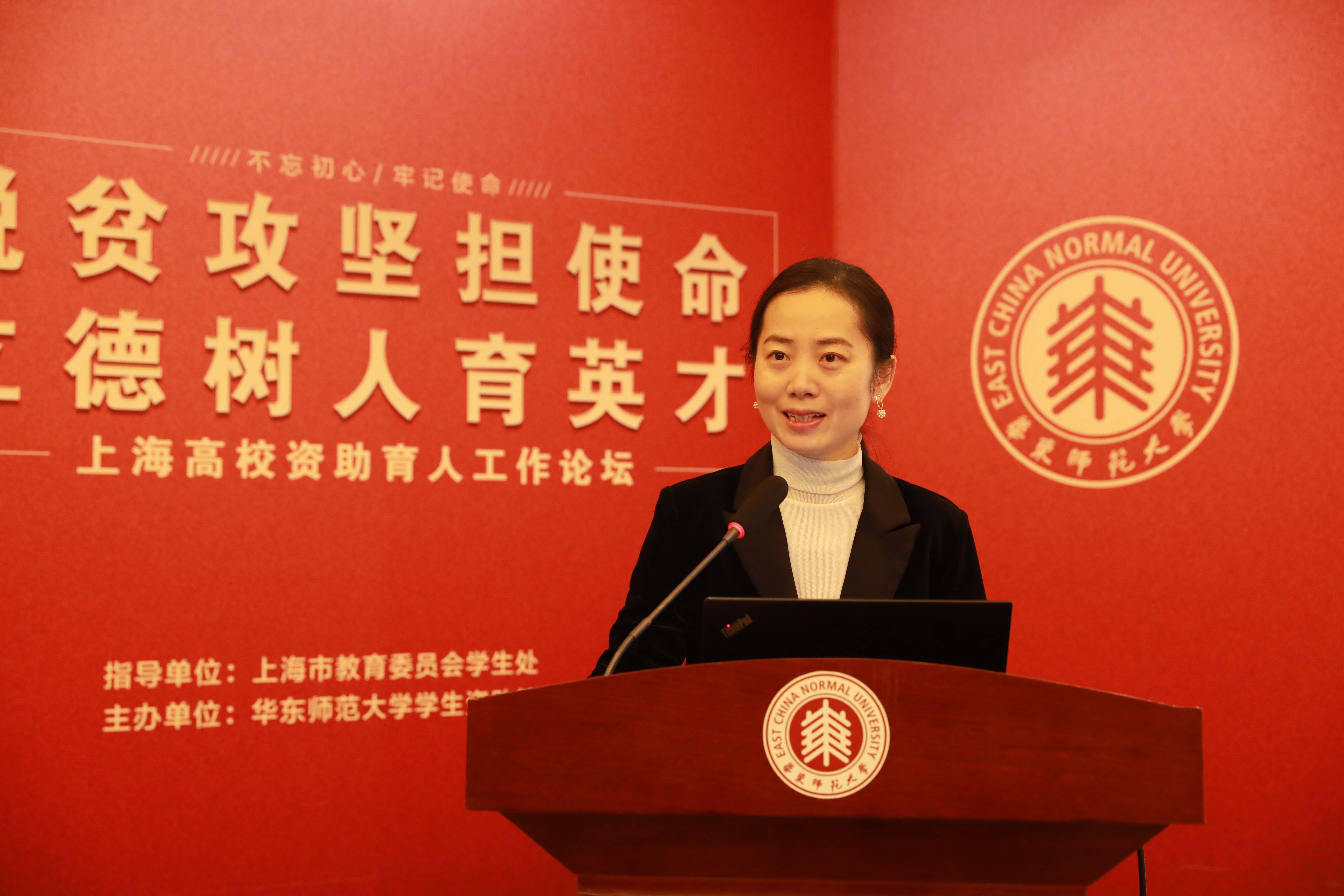 论坛最后,上海市教育委员会学生处一级调研员赵靖茹在总结讲话中对上海高校资助育人工作目前取得的成绩表示肯定,并强调高校要加强体系建设,用资助工作推动助困、奖优。既要将助困和奖优的对象、申请条件等进行规范化和标准化,实现对象精准、内容精准;还要加强教育引导,在助困中凸显劳动教育,在奖优中凸显激励机制,不断引导学生成长成才,实现立德树人育人目标,最终推动教育脱贫,推动教育攻坚。