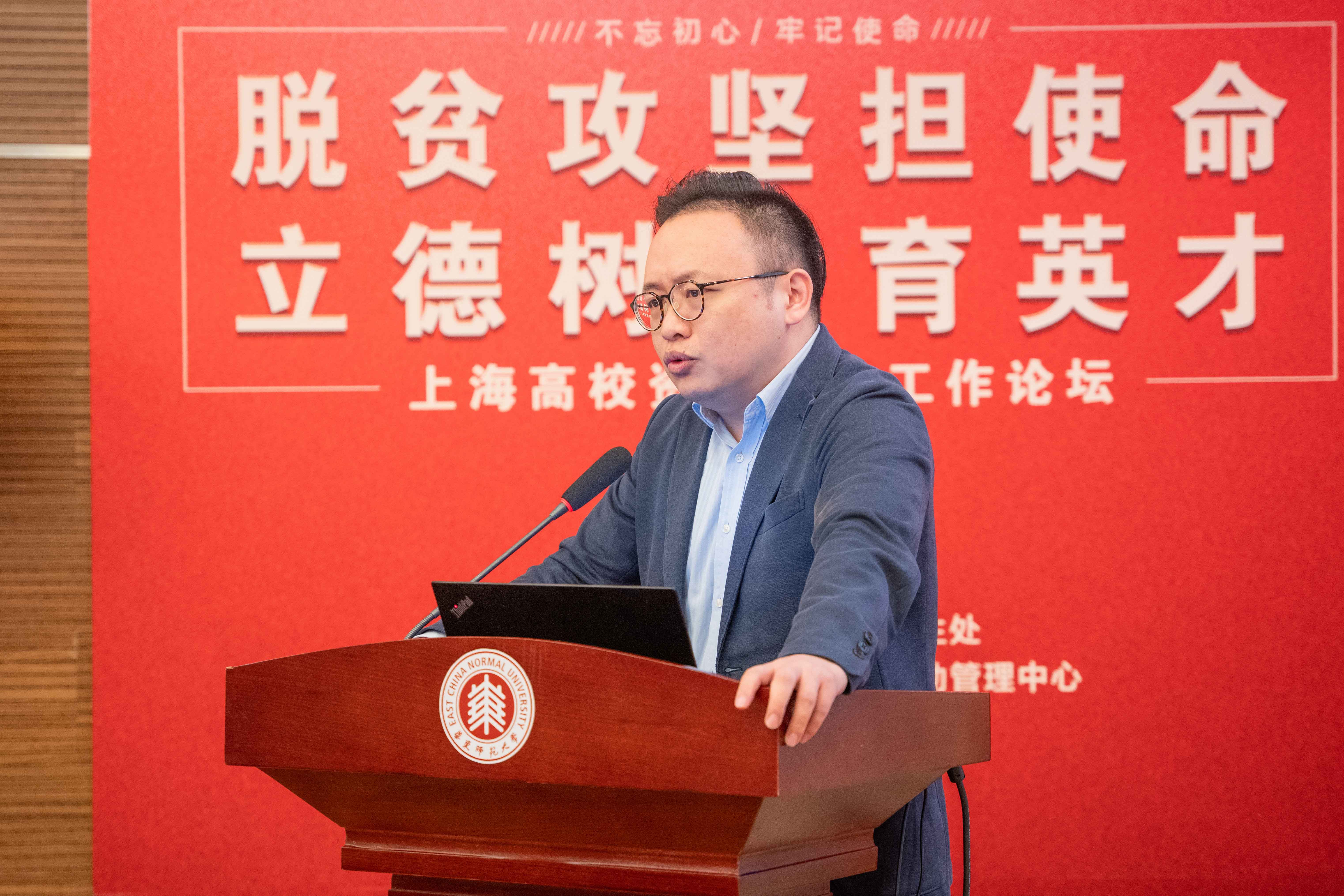 上海市学生事务中心副主任王涛介绍《上海高校资助育人案例集》