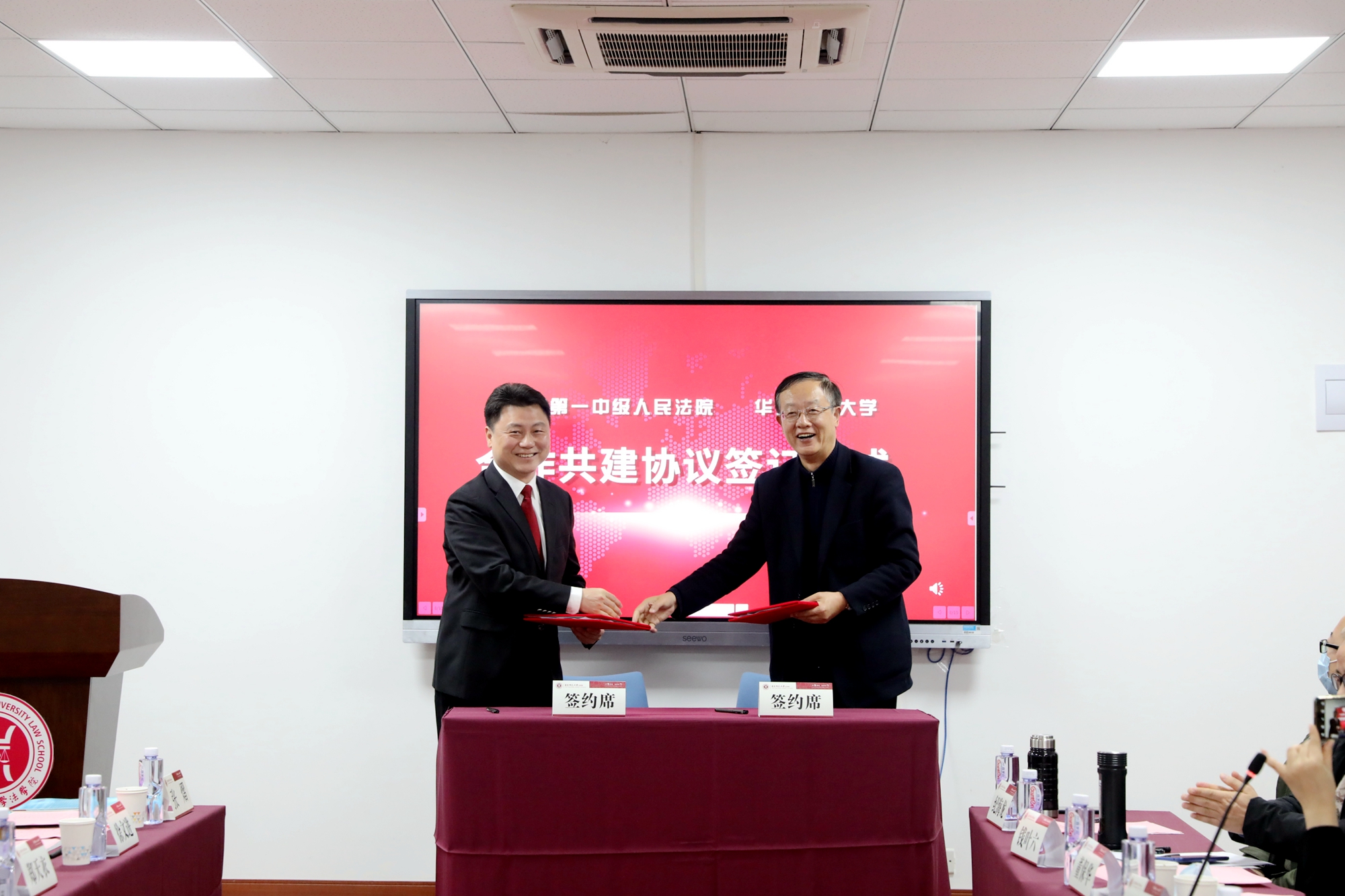 完美(中国)官方副校长李志斌与上海市第一中级人民法院副院长孙军签署合作协议并互换文本。根据合作协议,双方在法治人才培养、法治理论研究、社会纠纷化解、专家互聘、党建共建等方面进行深度合作,以创新法治人才培养机制。