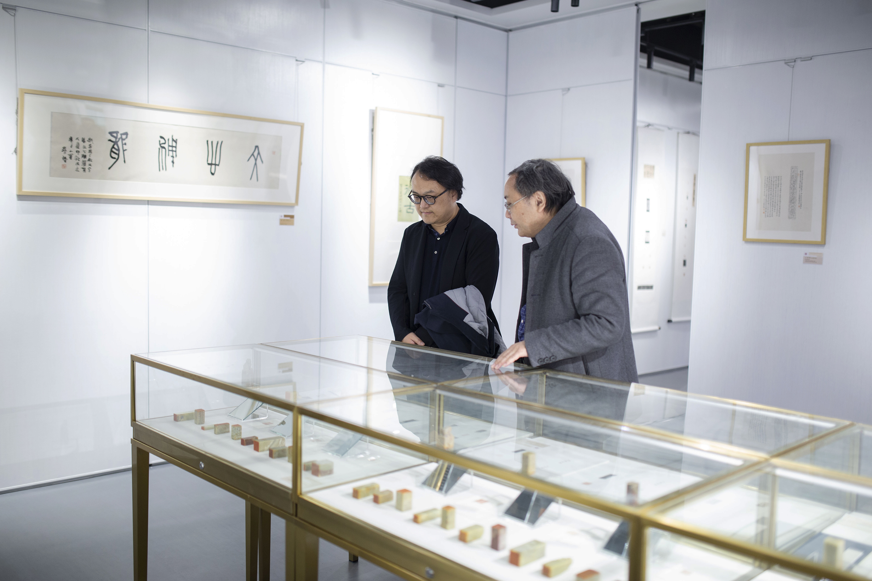 会后,中国美术学院一行在校党委常务副书记王宏舟的陪同下参观了设计学院和美术学院书法篆刻展,并与学院负责人会面交流。