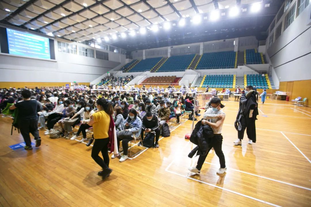 3月27-28日,约18000名学生及教职员工分校区、按时段在两校区体育馆接种了新冠疫苗分别由闵行区、普陀区医护人员组成的临时接种组“上门接种”。