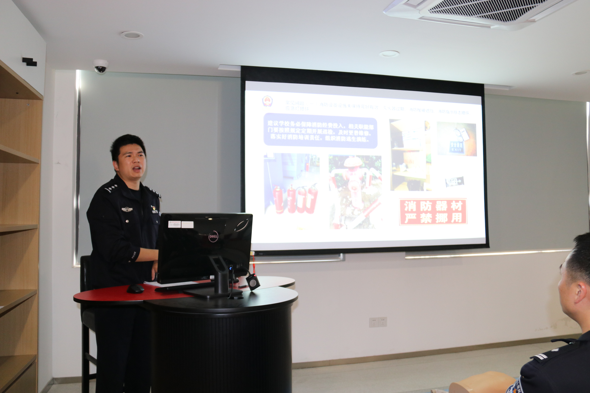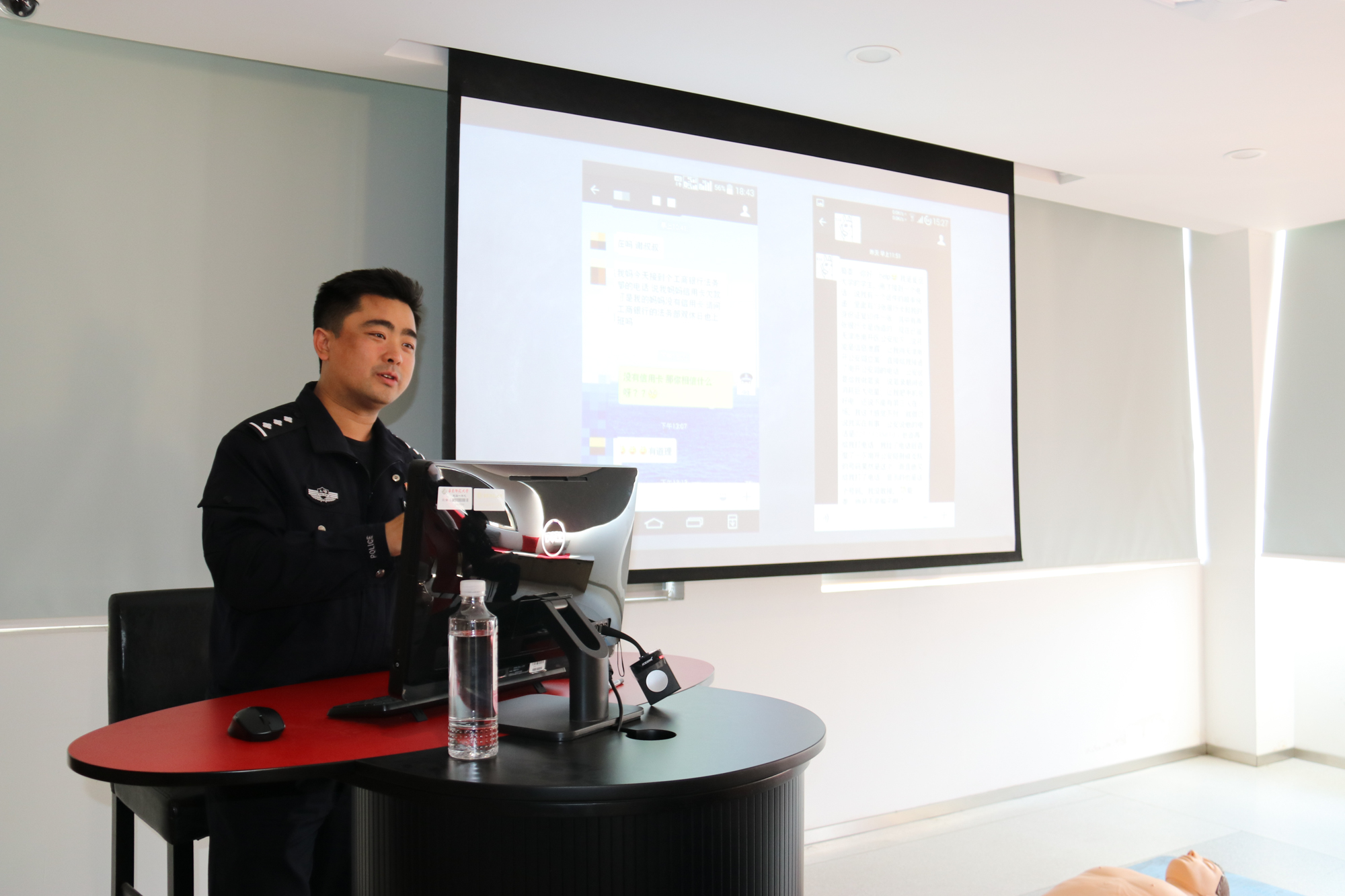 文保分局谢晔、顾宇靓两位警官从校园安全案例入手讲解了校园存在的各种安全隐患,由此提高了安全员的安全防范意识,并将安全知识应用到工作实践中。