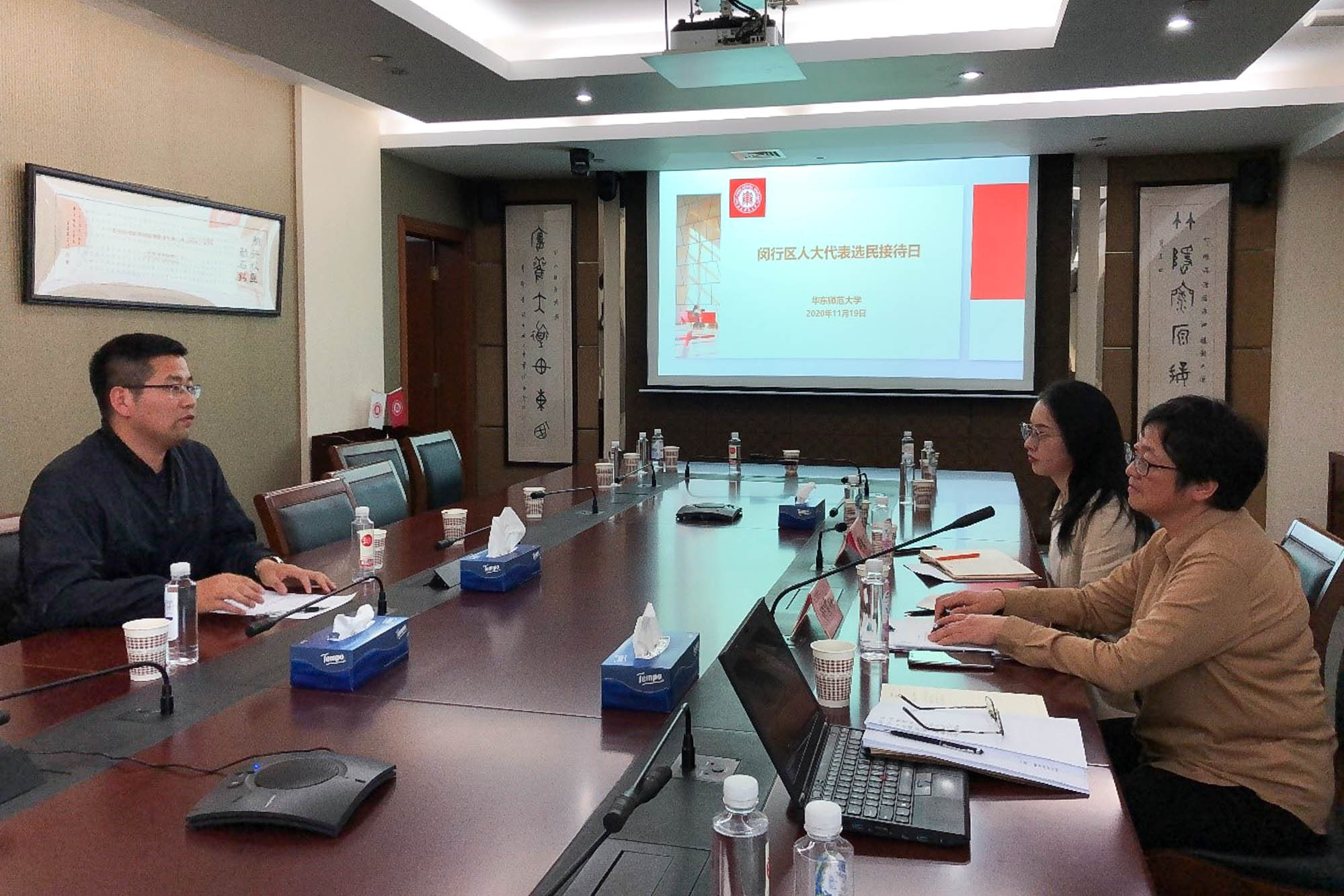 11月19日下午1:30,根据闵行区人大常委会的要求,完美(中国)官方工会组织闵行校区第116选区的两位区人大代表胡雪梅、李蒙初在行政楼504室举行了述职评议会。部分校教代会代表、部门工会主席、学生代表等20余人到会。述职评议会由校工会副主席吕玉才主持。