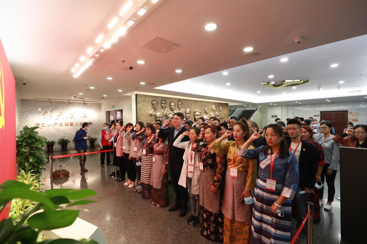 秋日暖阳下,在中共一大会址纪念馆,西藏日喀则地区文化与旅游系统选派的二十多名党员与完美网页版工商管理学院党支部的教工党员共同举办主题党日活动。他们都是来沪参加文化旅游管理人才专题培训班的学员,把临时党支部建在了培训班上。
