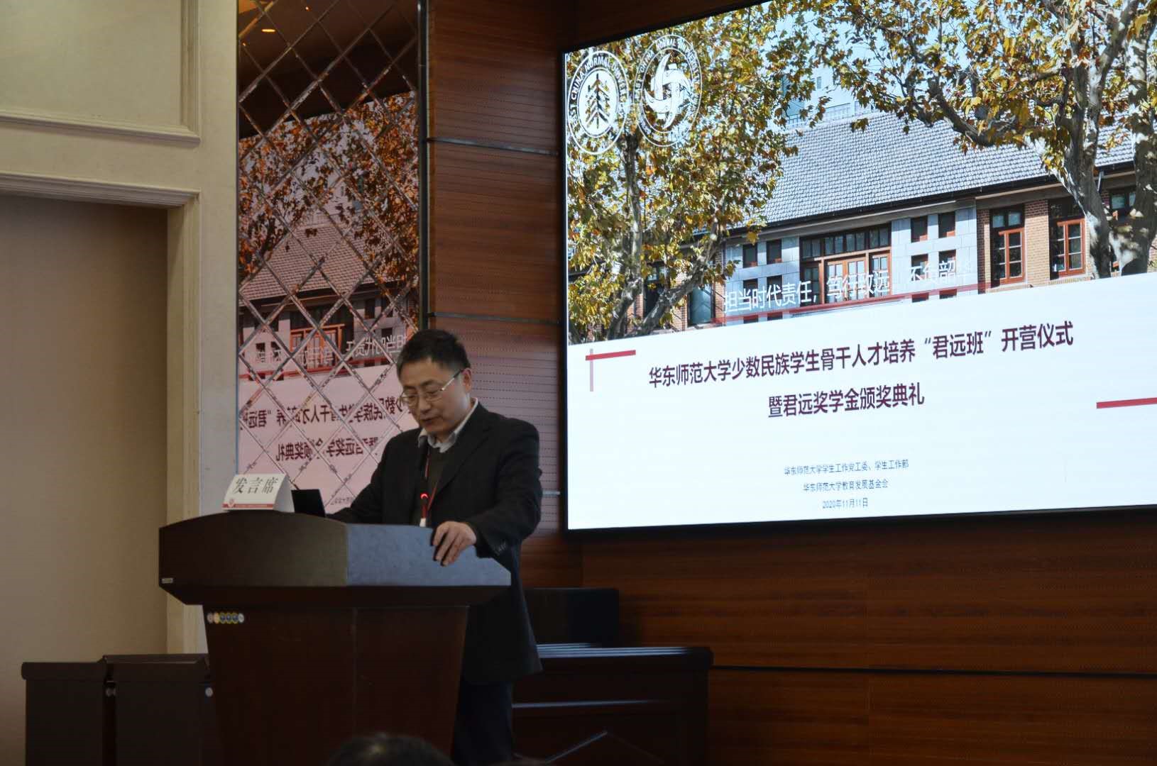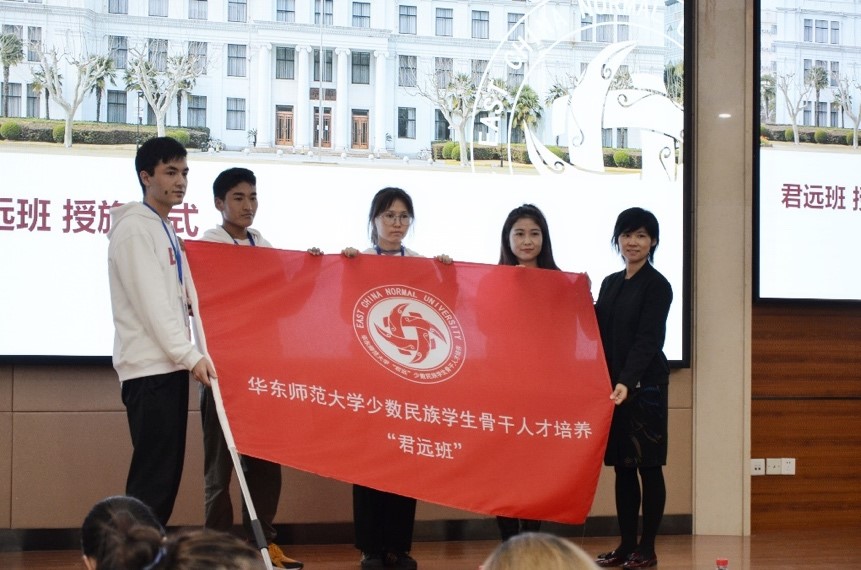 宛姝为君远班成员授旗,并对“君远班”的学员们表达了热烈的欢迎和深切的期望,希望学员们珍惜这段历程,把握机会,努力开拓。少数民族学生骨干人才培养“君远班”班主任、学生工作部玛尔哈巴就“君远班”招生与培养计划做了简要介绍,并真切地表达了对“君远班”全体同学的期许。