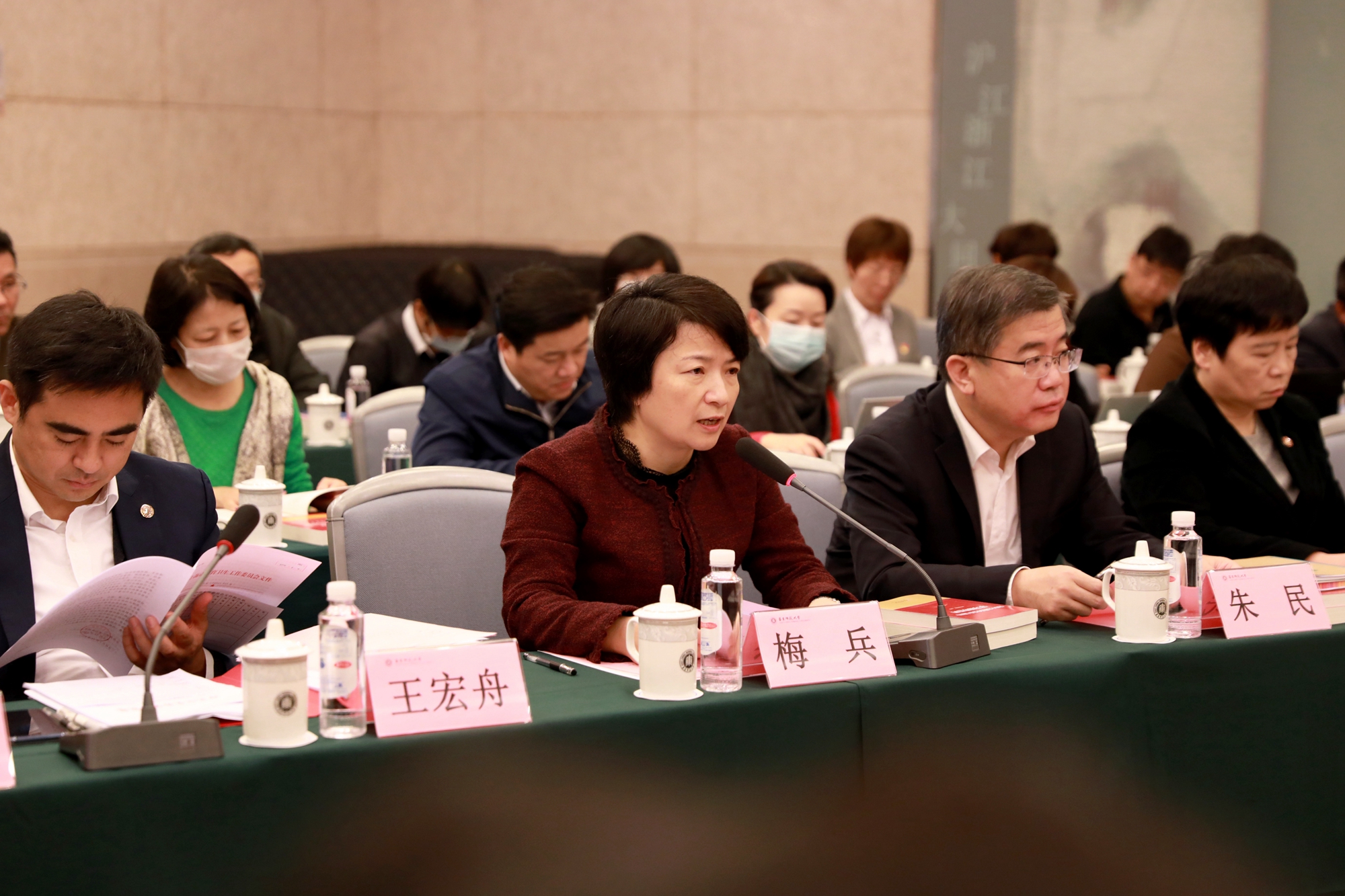 如何深刻认识理解党的十九届五中全会提出的“坚持创新在我国现代化建设全局中的核心地位,把科技自立自强作为国家发展的战略支撑”,以及这一战略新任务对大学提出的新挑战、新要求?如何结合学校“十四五”时期建设发展实际,融会贯通地把全会精神往深里学、往实里做?11月13日上午,校党委中心组学习扩大会在中山北路校区举行,对党的十九届五中全会精神进行专题学习。校党委中心组成员,教学科研单位党委(党总支)书记、党工委书记,管理服务部门党委书记、党工委书记,党委各职能部门负责人,工青妇负责人等参加学习。校党委书记梅兵主持学习扩大会。
