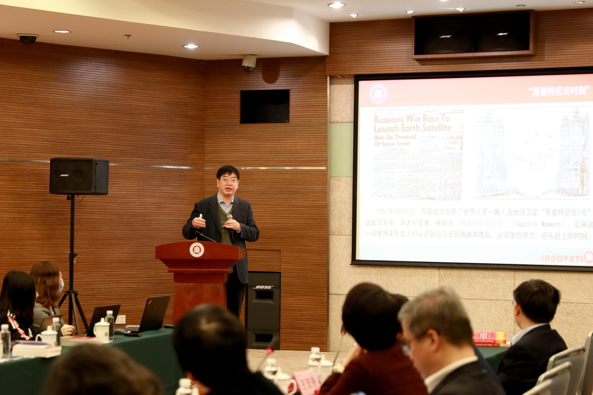 “大国竞争的本质是科技竞争。历史上看,这种竞争往往会促成世界重大技术变迁,乃至技术革命。”学习会上,我校城市与区域科学学院院长、教育部战略研究基地创新战略研究中心主任杜德斌教授作主题发言,从自身长期从事的创新战略研究出发,对党的十九届五中全会将创新提到现代化建设全局中的核心地位、将科技自立自强摆在“十四五”各项规划任务首位的重大战略部署谈了思考体会。