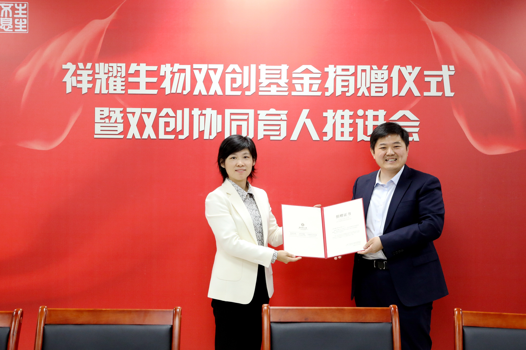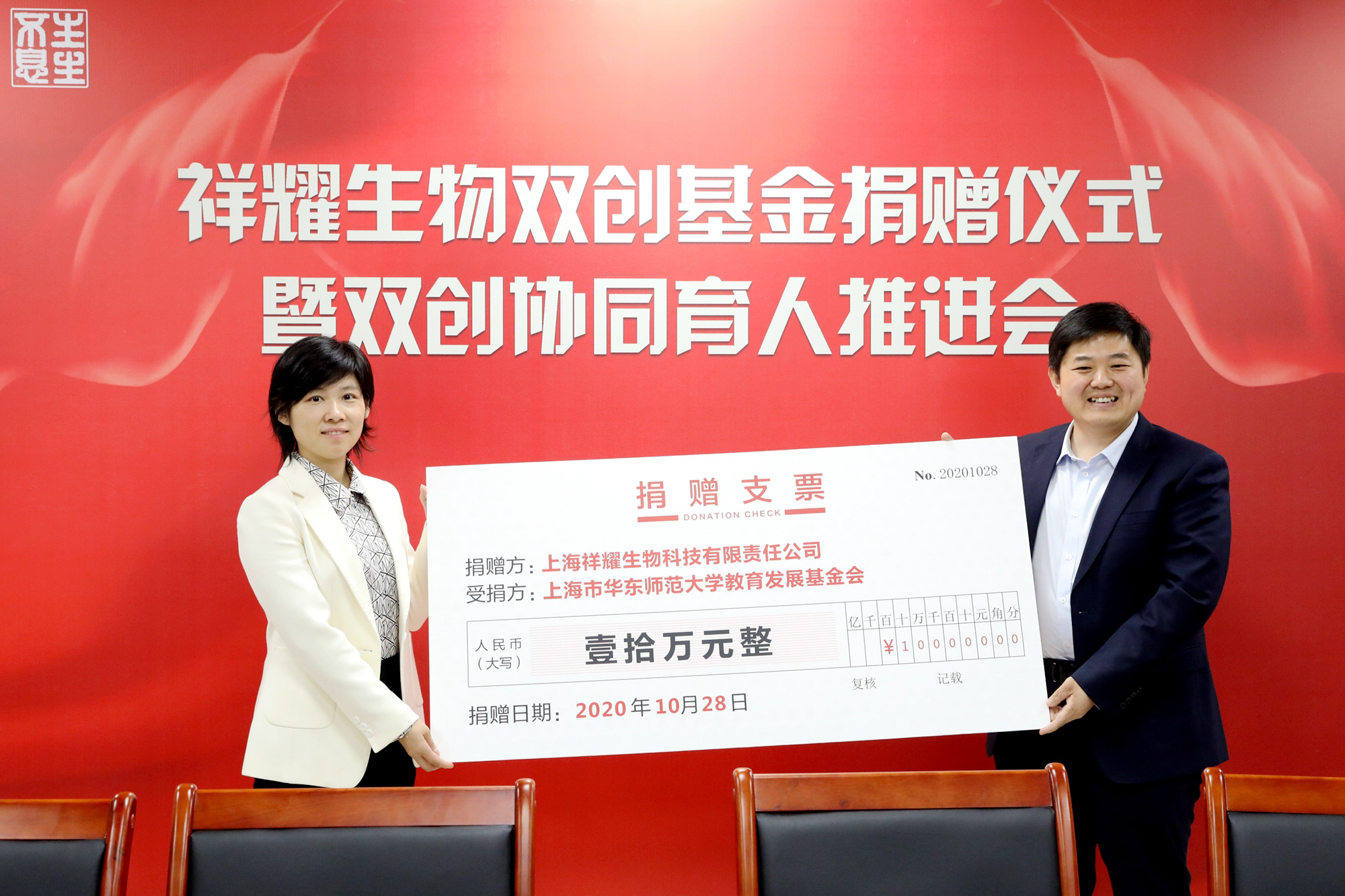 在10月28日下午举行的祥耀生物双创基金捐赠仪式暨双创协同育人推进会上,赵文祥将学校对其奖励中的10万元捐赠给校教育发展基金会,设立双创基金,支持生命科学学院双创育人工作,帮助已开展创业实践或有创业意向的学弟学妹,培育和孵化优秀创业项目,发挥创业带动就业的倍增作用。