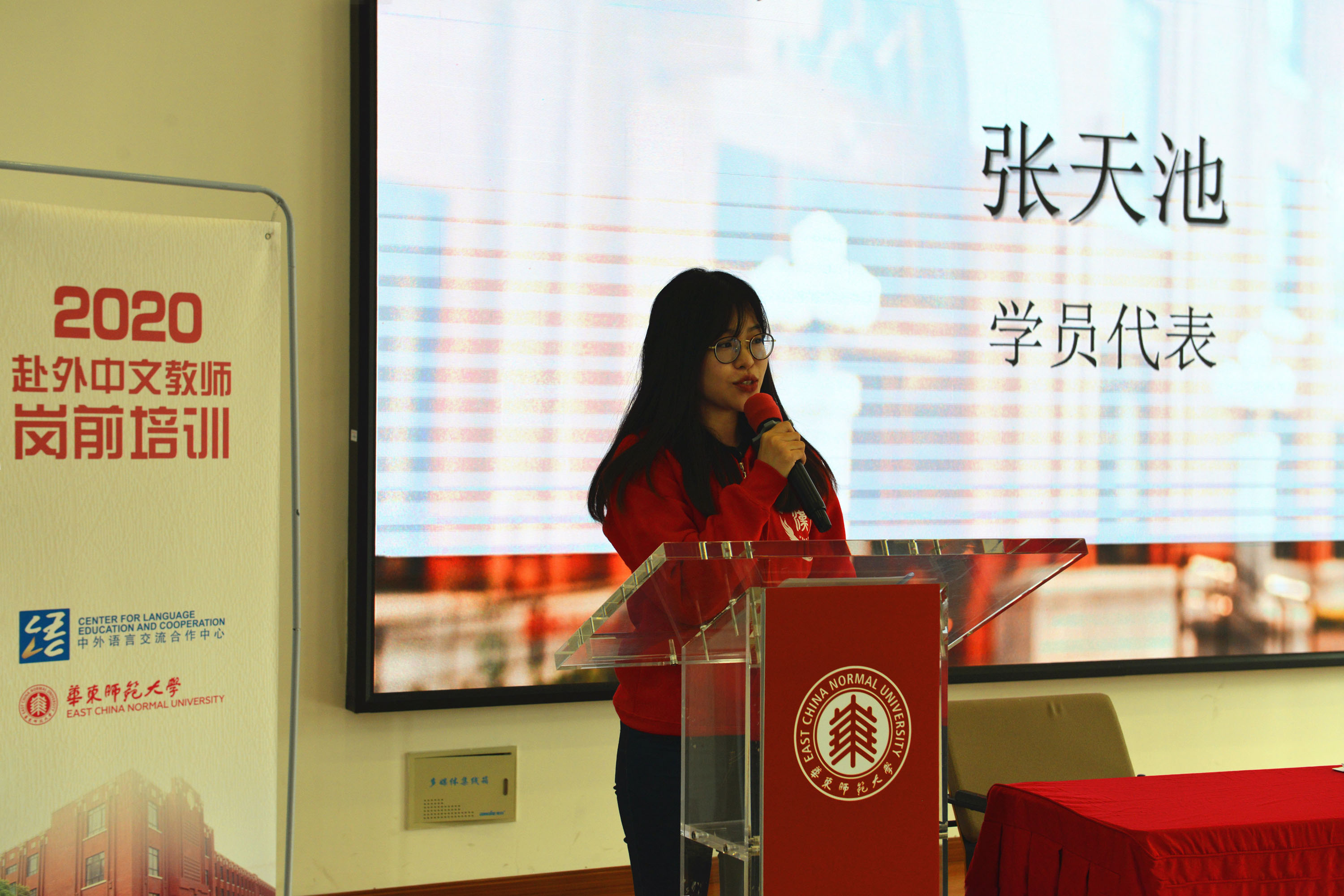来自完美网页版的张天池作为培训学员代表发言,字里行间洋溢着对汉教事业的热爱。她感谢语合中心给予这次宝贵的培训机会,感谢基地的同仁们为培训顺利进行所做出的努力。她倡议,从此刻起,大家时刻严格要求自己,仔细阅读培训通知消息,遵守培训纪律,认真完成线下和线上各项培训任务。她相信在座的老师们都是怀揣着对中华文化的热爱和自豪,才义不容辞地在特殊时期继续为国际中文教育事业贡献力量;相信会在未来一个月的培训中和赴任期间,为自己的梦想持之以恒地奋斗!