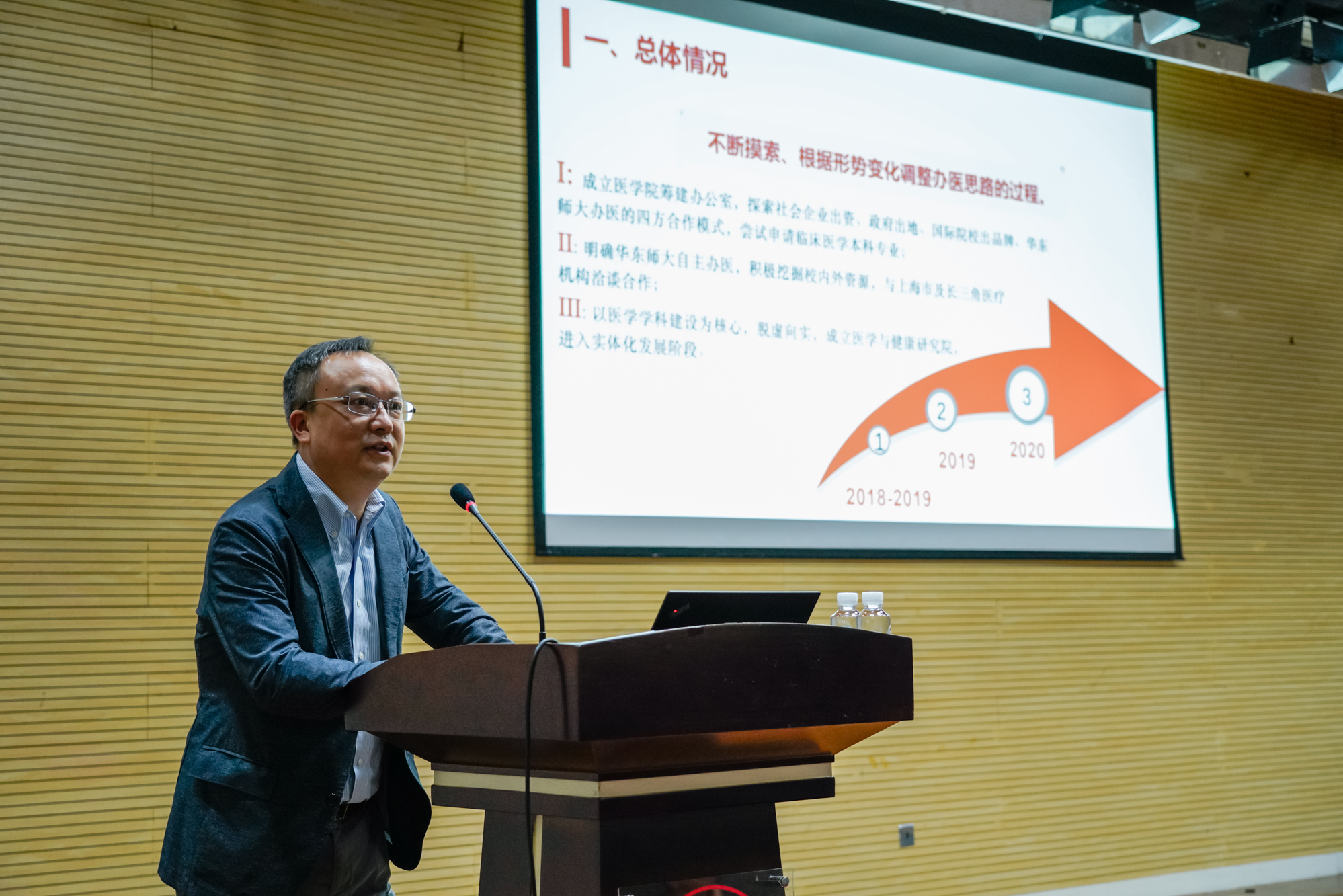 校长助理雷启立从医学与健康学科建设方面汇报社会服务拓展工作进展
