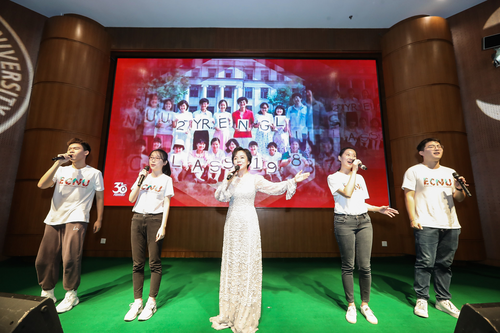 在今年的校友日活动中,来自12个班级百余名毕业三十周年的校友与恩师们欢聚一堂,举行了一场特别班会,重温美好校园生活。主题班会由1986级生物系朱玉童校友、2017级播音与主持专业杜金芮同学主持,班会在响亮的班级点名声中开场。