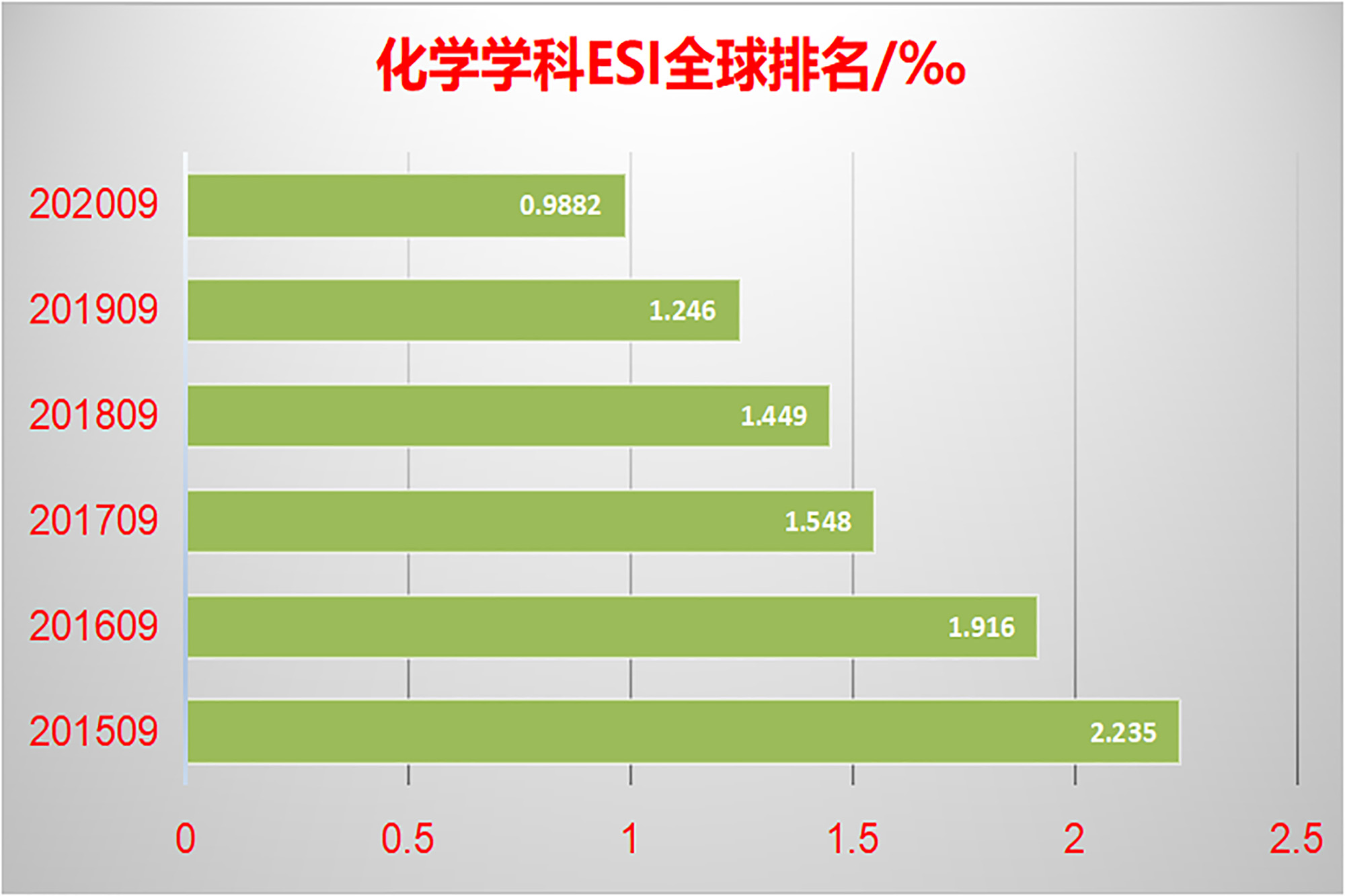 完美网页版化学学科近五年ESI全球排名变化