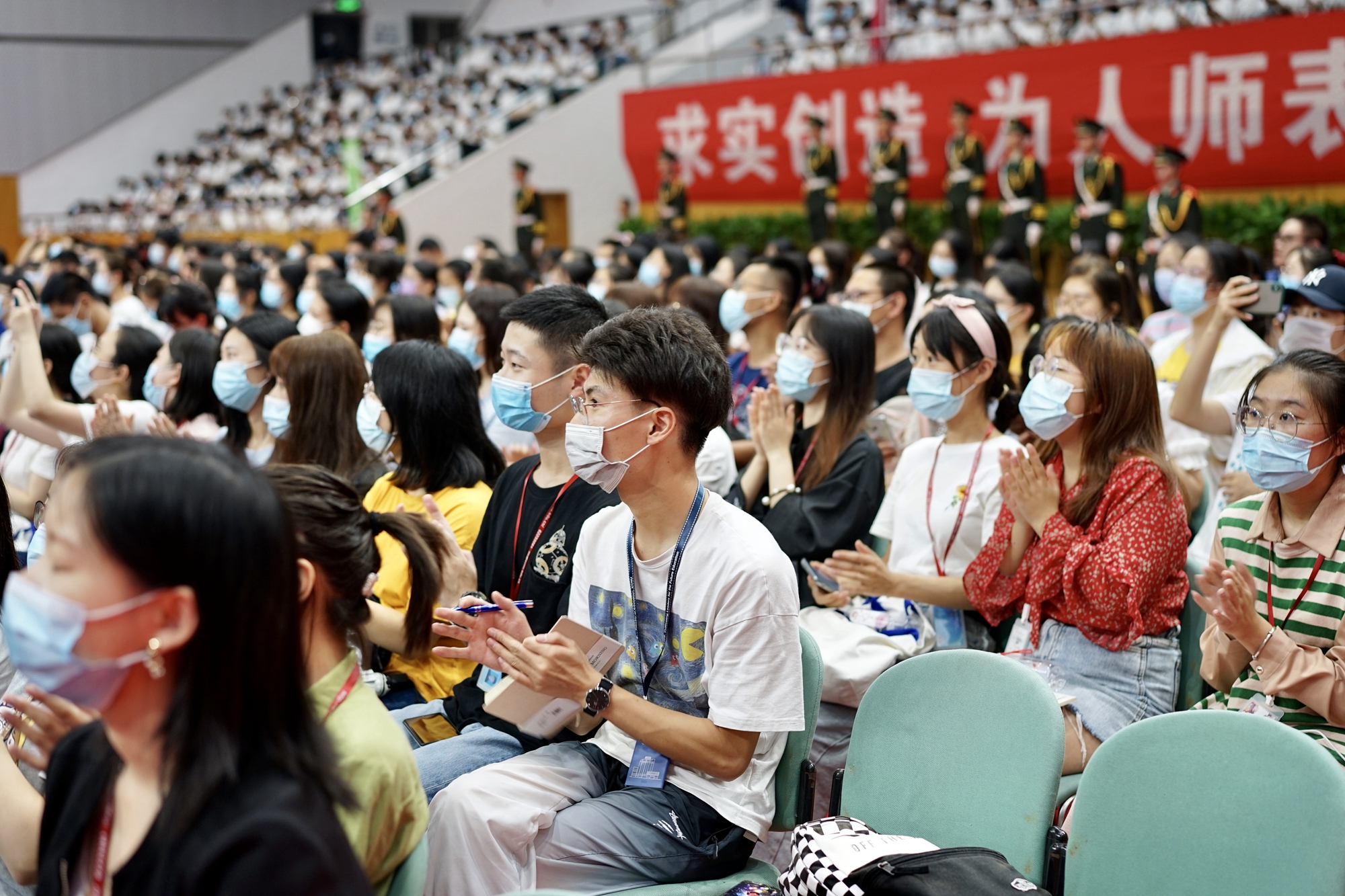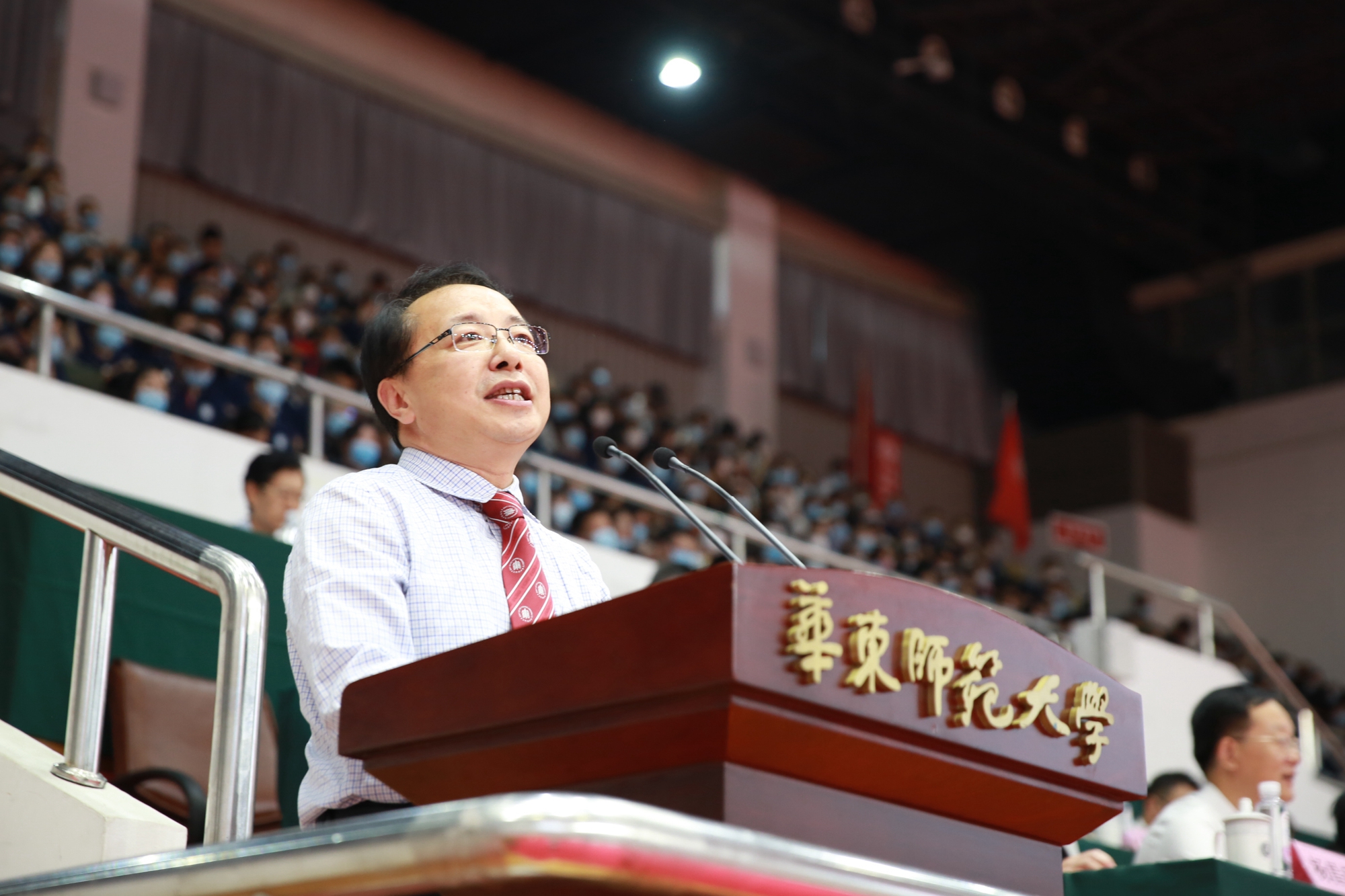 钱旭红对历经2020年极为不寻常的艰难与挑战的同学们诠释了“爱在华师大”的真谛。他指出,华师大的爱,就是帮助每个人实现“自由全面发展”,追求世界一流的“卓越”,鼓励学生拥有批判性思维和创造性思维。学校倡导思维导向的通识教育、前沿导向的专业教育、英才导向的智能教育,强调超越知识点的教育,以卓越学术推动卓越育人。这对于度过了跌宕起伏的一段时光终于进入大学校园的同学来说,正是对其探寻和确定人生意义的积极回应。