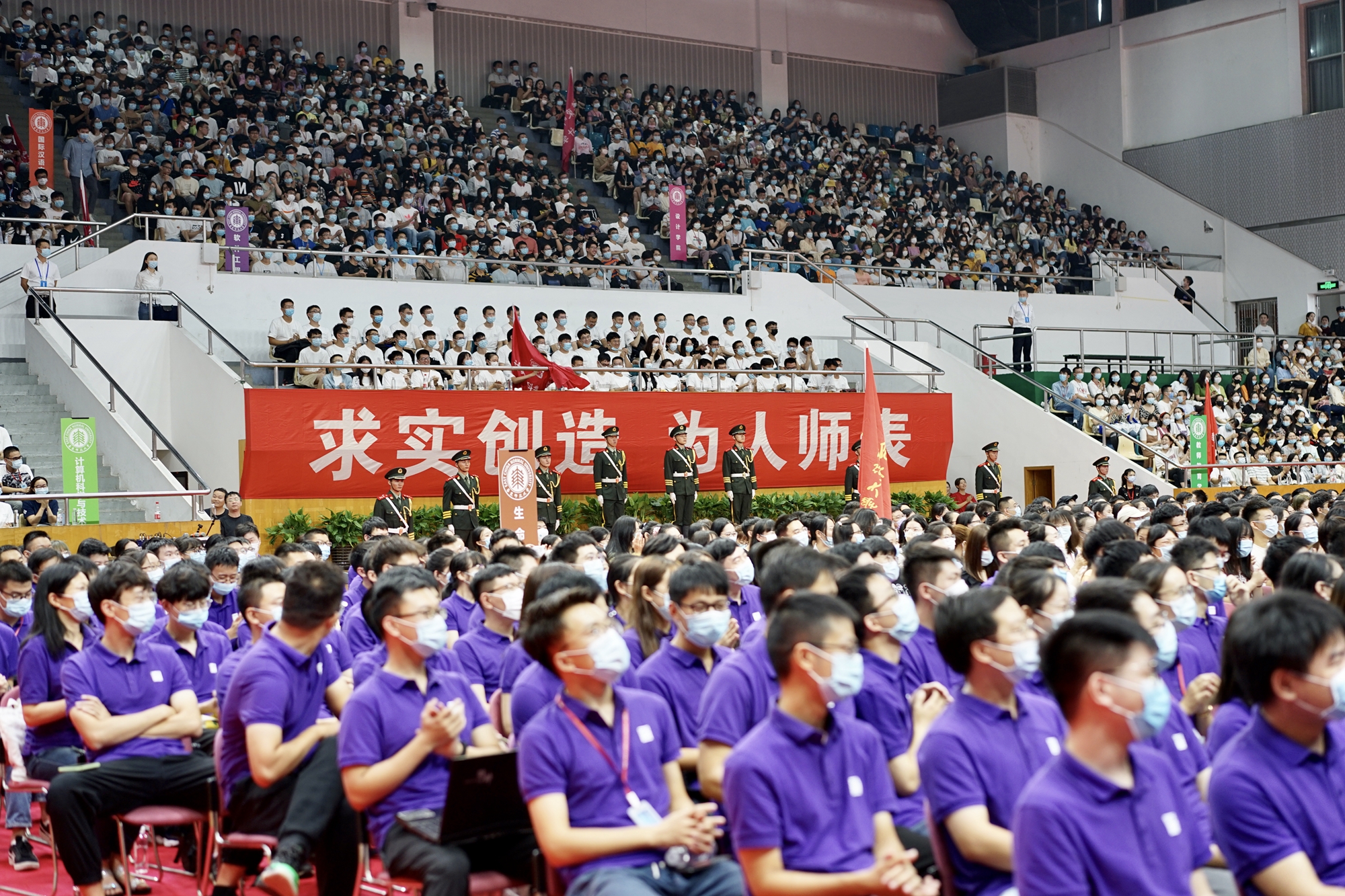 在庄严的国歌声中,2020级新生开学典礼正式开始。