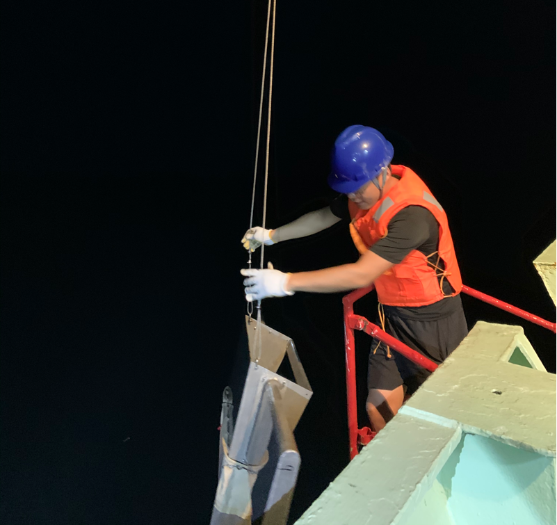 在7月13日至7月29日期间,各课题组10多名研究生陆续在长江口徐六泾河段与南支河段采用定点与走航相结合的方式进行现场采样和ADCP与OBS等监测仪器数据采集,主要包括盐度、浊度、流速、流向等水文数据,营养盐、悬浮泥沙、塑料垃圾及微塑料入海通量监测采样,以及采集全水深与底部沉积物样品进行后续实验室分析。