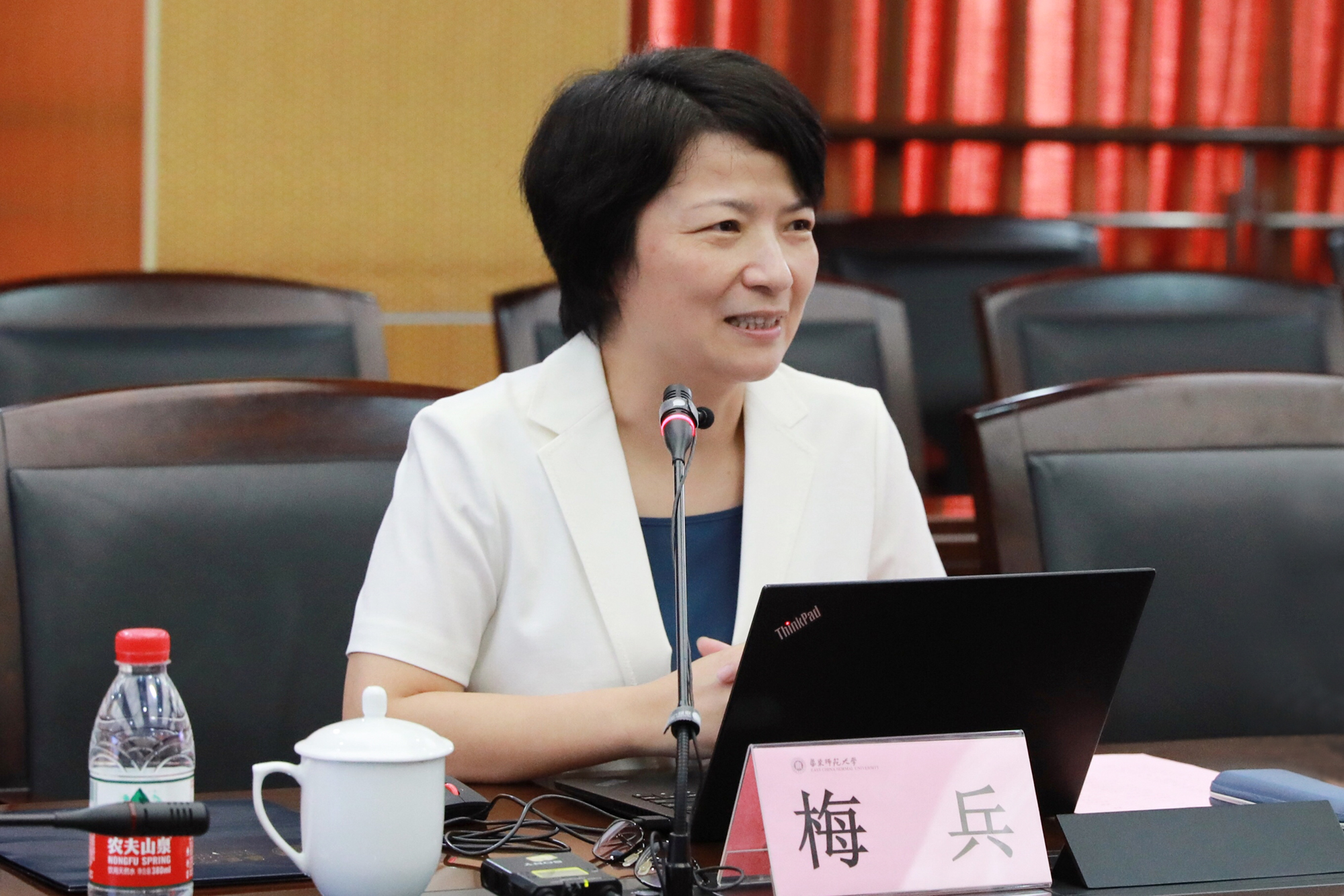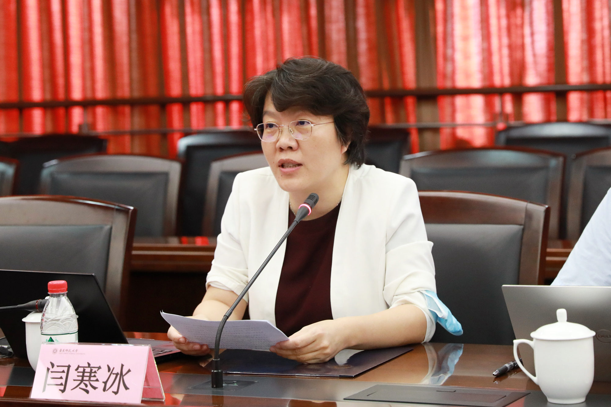 教师发展学院院长闫寒冰介绍了教师发展学院为学校教师职业发展所做的努力,表示作为承办单位,将不负学校信任,持续为各位新教工的职业发展助力。闫寒冰介绍,与往年不同,今年的培训设计了更多线上培训内容,这既是面对疫情常态化防控的必要之举,也是从“培训”到“赋能”的信息化培训创新之举。教师发展学院已派出精干的班主任团队,全力认真做好培训期间的各项服务工作,从而助力新入职教职工学有所获,早日融入师大大家庭。