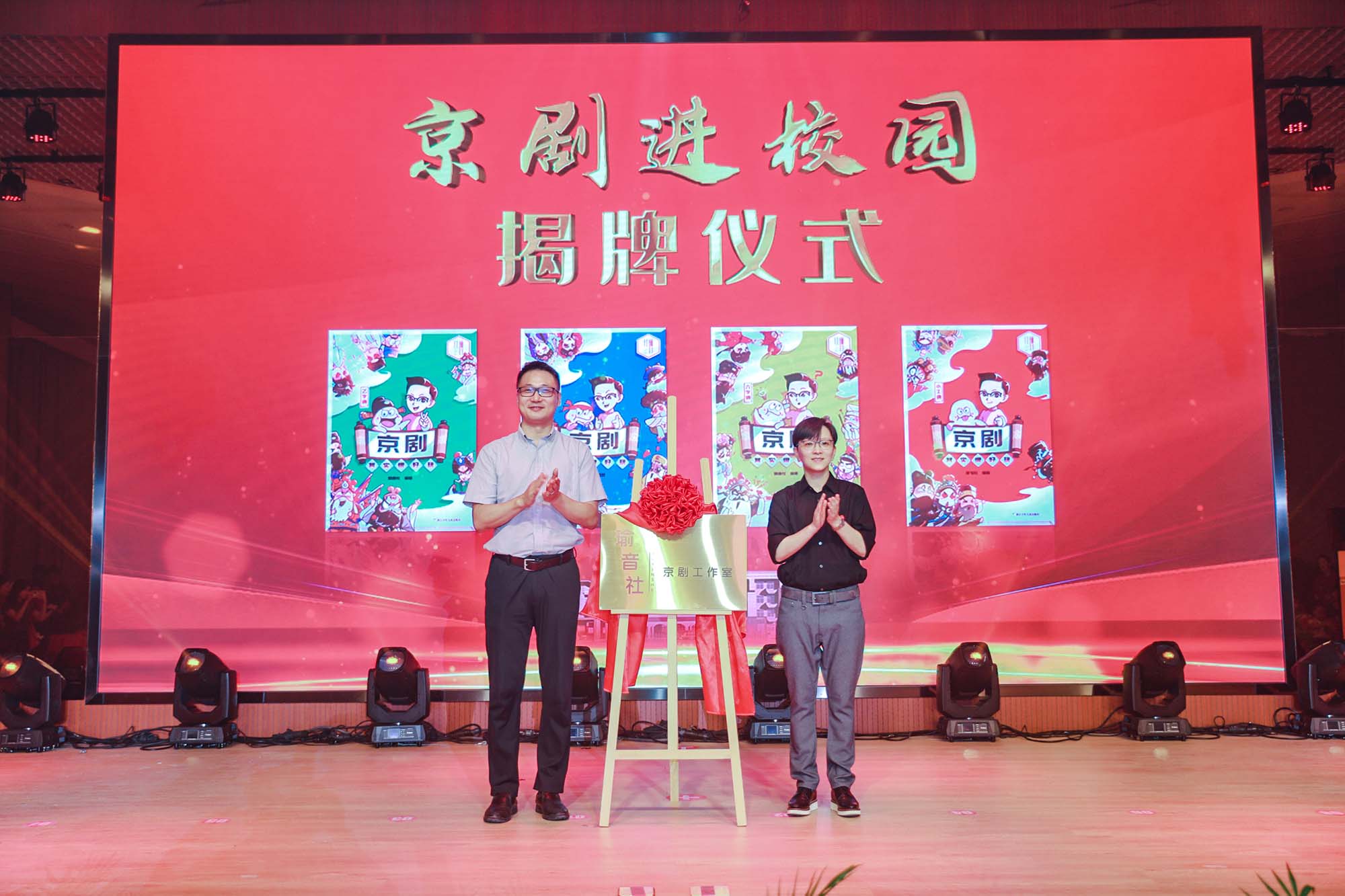 吴泾镇镇长张文琦和京剧名家王珮瑜老师共同为“京剧进校园”项目揭牌