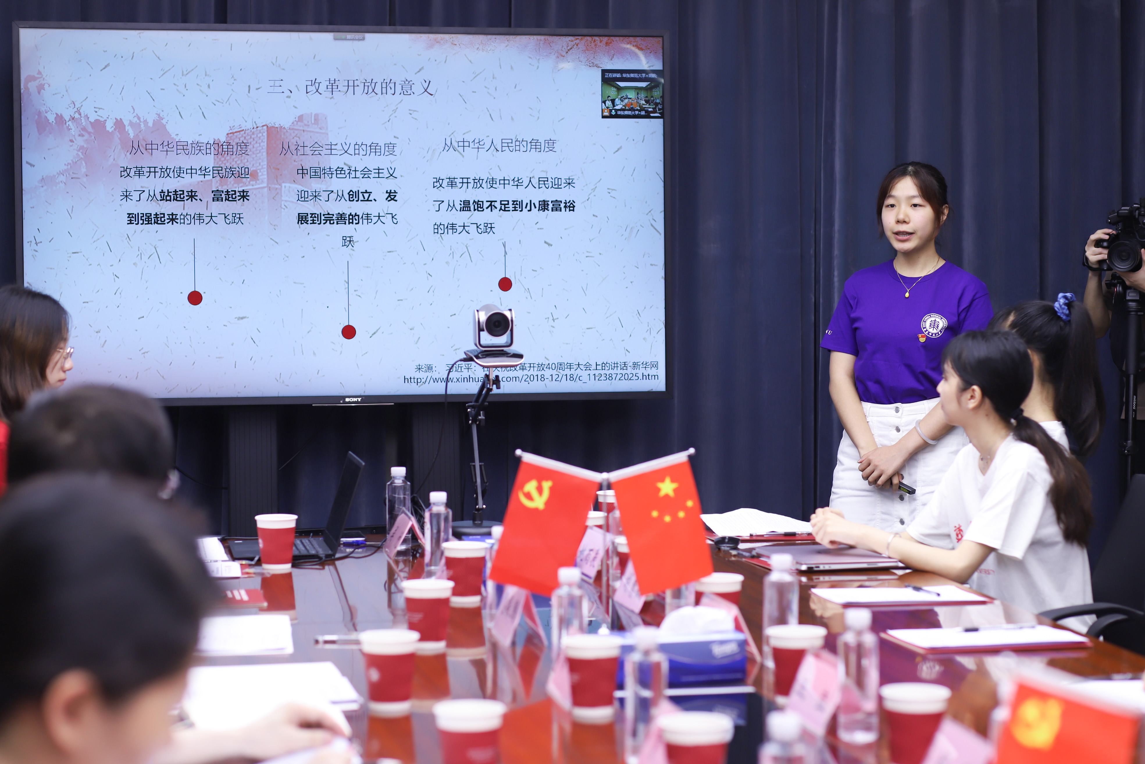 在微党课《博览与聚焦:改革开放那些事》中,教育管理系2017级本科生党员胡慧敏结合对习总书记在庆祝改革开放40周年大会上讲话的学习理解,介绍了改革开放的时代背景、历史意义、光辉历程、伟大影响,同时围绕“人民城市人民建,人民城市为人民”的理念,交流了完美(中国)官方教育学人应该如何为上海教育改革发展贡献力量。作为一个地道的上海姑娘,胡慧敏还以改革开放以来浦东新区的蓬勃发展为例,重点讲述了改革开放对于“以人民为中心”发展思想的贯彻和坚持。