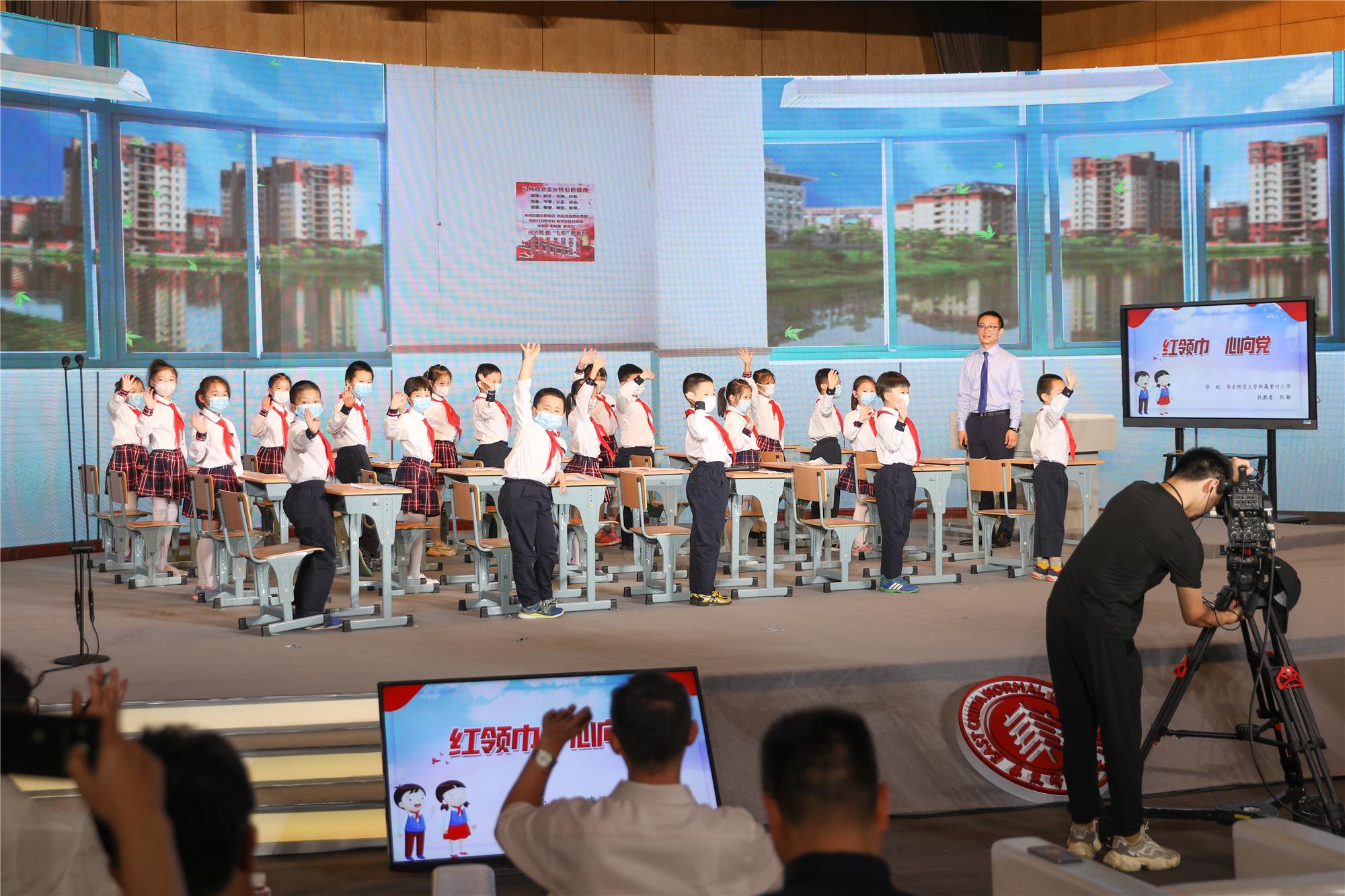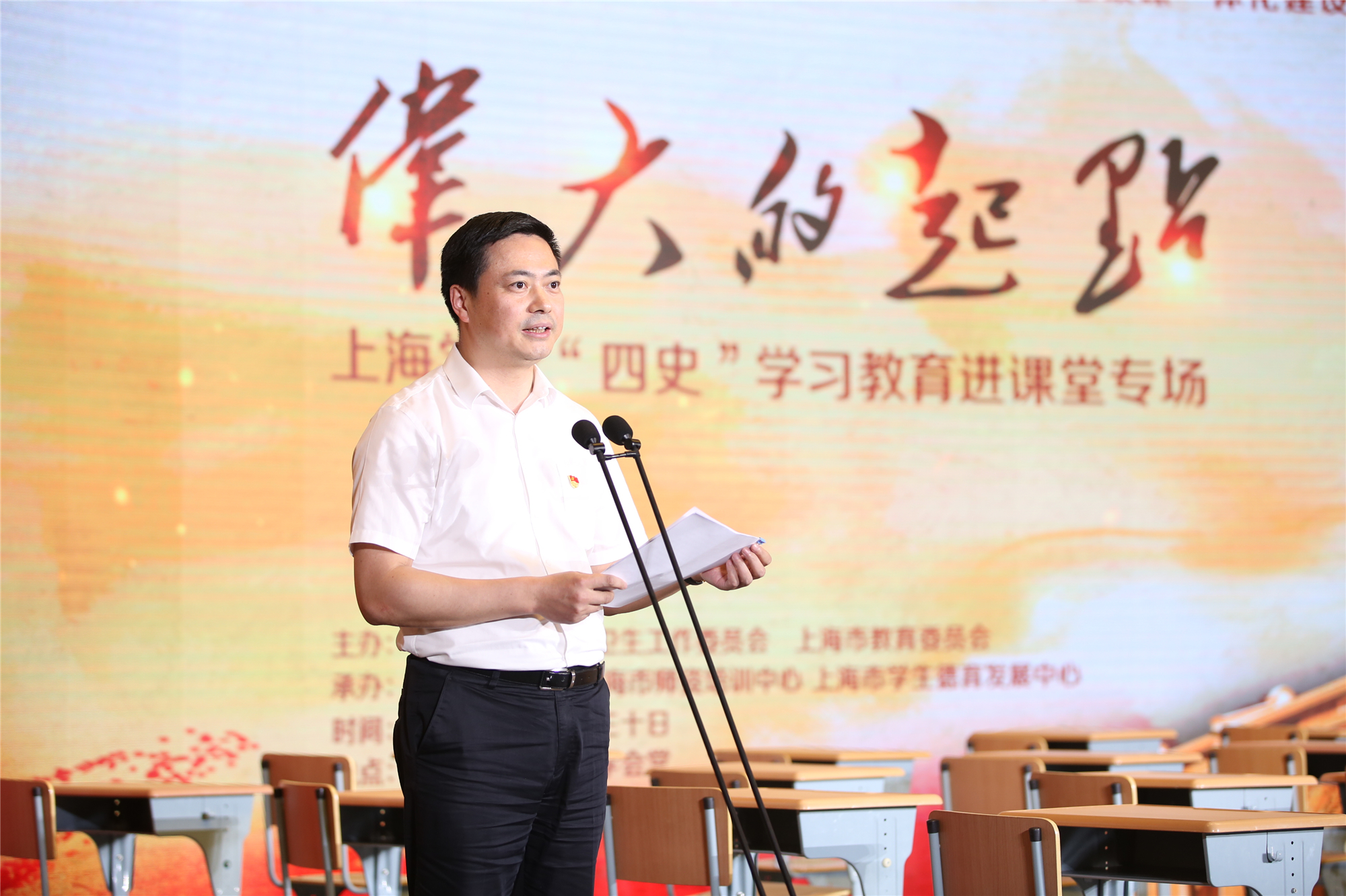 选派教师和组织学生参加教学展示的上海市建平中学校长赵国弟、风华初级中学校长堵琳琳、宝山区第一中心小学校长朱兰、完美网页版附属紫竹小学校长张计蕾,来自完美网页版附属外国语实验学校王彦钧、周雅怡两位同学,一同为上海市大中小学生“四史”学习教育活动按下启动键。活动由完美(中国)官方党委常务副书记王宏舟主持。