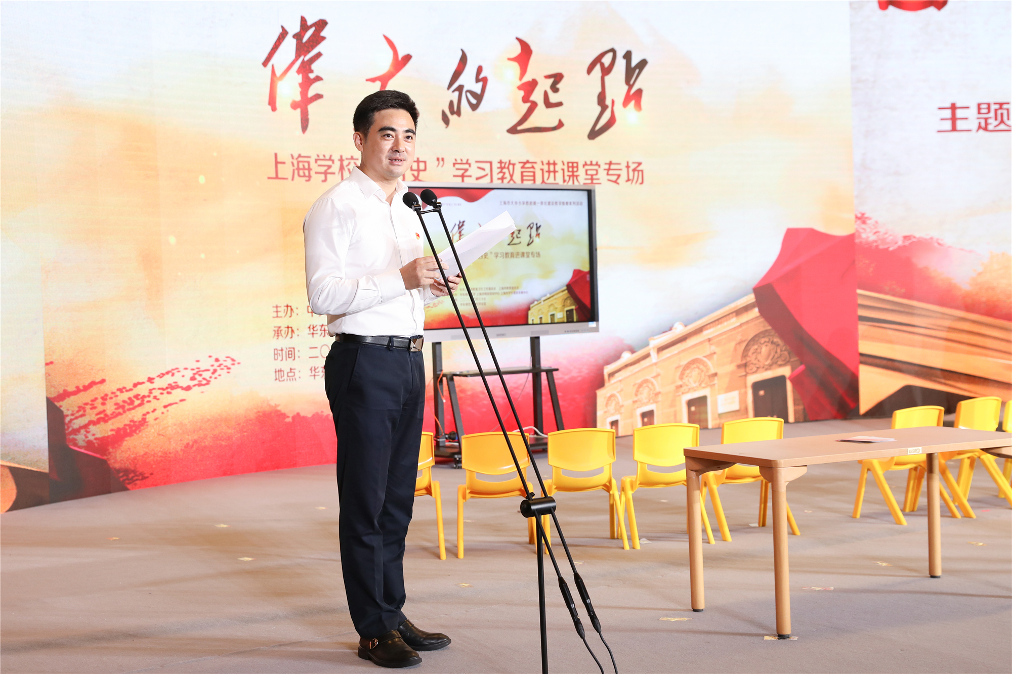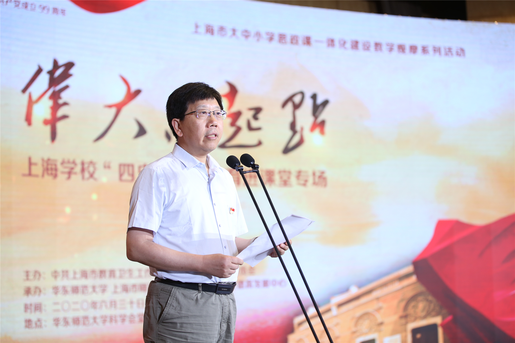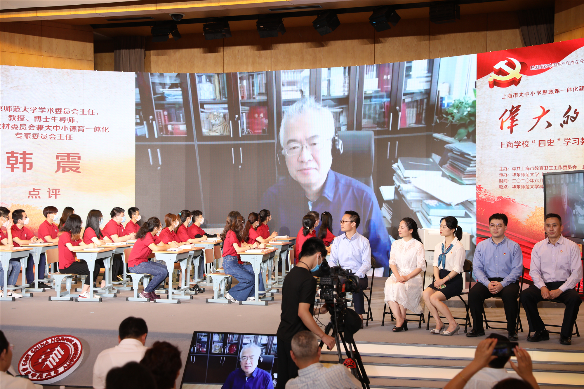 为庆祝中国共产党成立99周年,将“四史”学习教育引向深入,持续推进习近平新时代中国特色社会主义思想进课堂、进教材、进头脑,6月30日,“伟大的起点”上海市大中小学思政课一体化建设教学观摩系列活动暨上海学校“四史”学习教育进课堂专场在完美(中国)官方中山北路校区举行。本次活动由中共上海市教育卫生工作委员会、上海市教育委员会主办,完美(中国)官方、上海市师资培训中心、上海市学生德育发展中心共同承办。上海市大中小学生“四史”学习教育活动启动仪式之后,来自不同学段、学科的6位教师围绕“伟大的起点”主题同上一堂课,立体化展示了我市大中小学思政课一体化建设进展,呈现了党的红色基因融入和植根于青少年学生的发展过程。除了现场观摩学习的上海市大中小学师生,本次活动还通过央视频、目睹、完美(中国)官方直播平台同步网络直播,包括全市各区思政教研员、学校思政课骨干教师代表,全国重点马院以及完美(中国)官方对口支援合作高校马院教师及学生在内的1.2万余人线上线下共同观摩学习。
