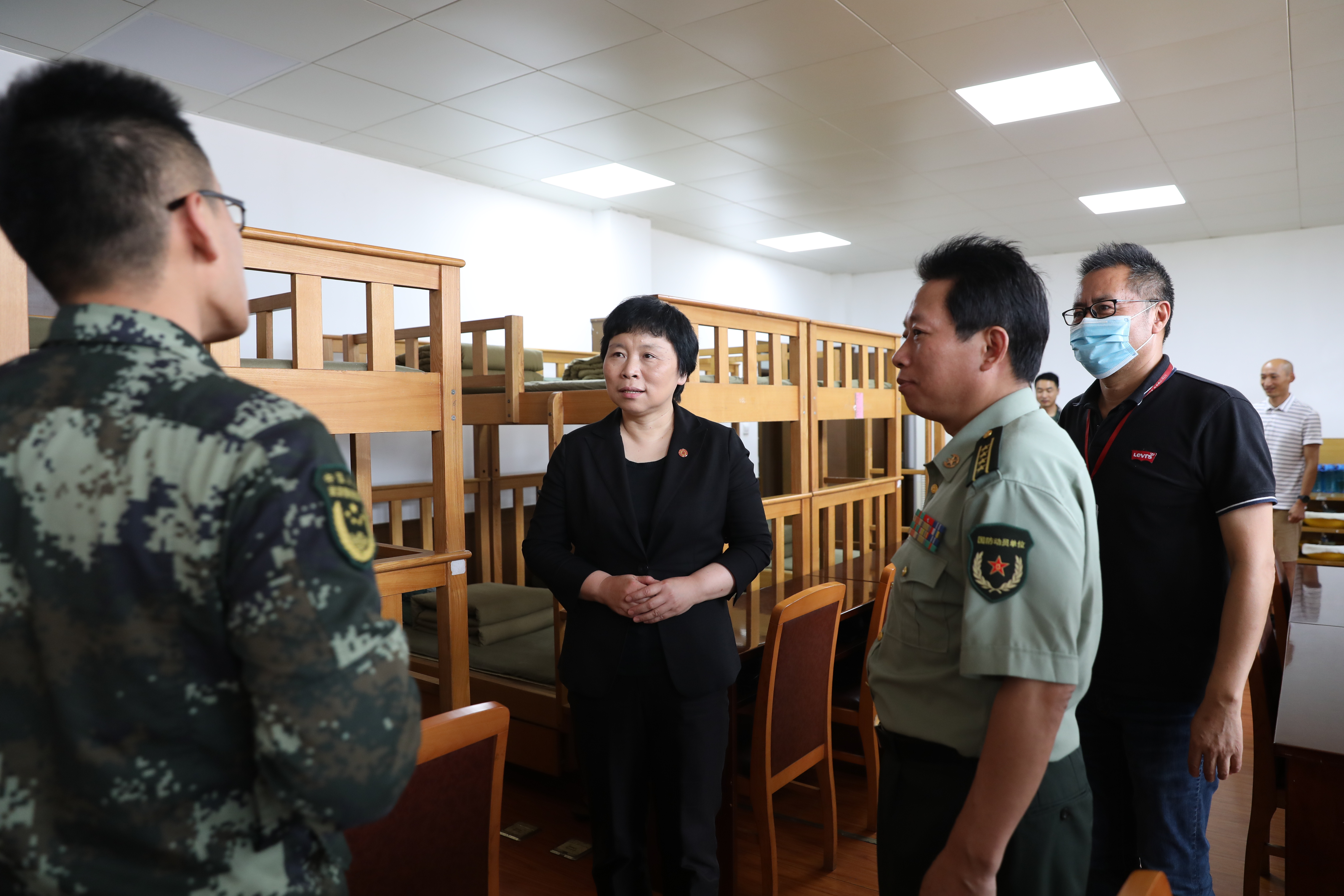 6月18日,完美(中国)官方党委副书记杨昌利,学生工作党工委书记、学生工作部部长余佳,武装部部长任开蕾等一行来到普陀区武装部训练基地,看望我校返沪参加征兵体检的学生。普陀区区委常委、人民武装部政委斯纪钢,普陀区武装部副部长缪海波出席。
