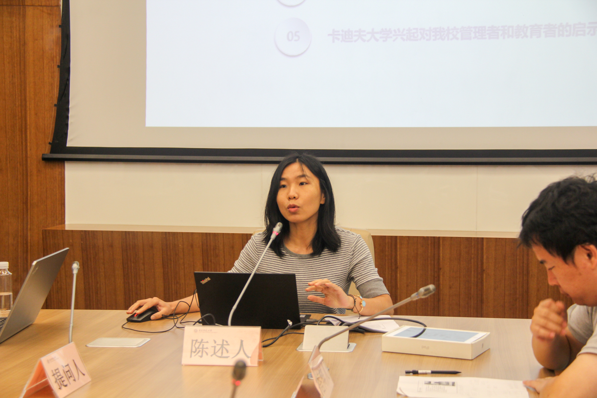 三组学员围绕“世界一流大学建设”课程大纲,以“他山之石(厦门大学),南强•自强:世界一流大学建设”、“部属师范大学‘双一流’建设的经验与启示——以北京师范大学为例”、“卡迪夫大学案例分析和启示”三大主题进行汇报。在凝练提纲、分工调研、集体讨论的基础上,三个小组形成了内容详实的案例分析报告。通过专题汇报、提问、答辩和点评等形式,三个小组对国内外3所一流大学的办学传统、大学文化、管理制度、师资队伍、人才培养、科学研究、学科建设等方面进行了详细介绍和对比分析,并提炼和总结了对我校加快“双一流”建设的启示。在答辩和点评环节,培训班学员就如何学习和借鉴其他高校的先进办学经验,提升我校“双一流”建设水平展开了热烈讨论。
