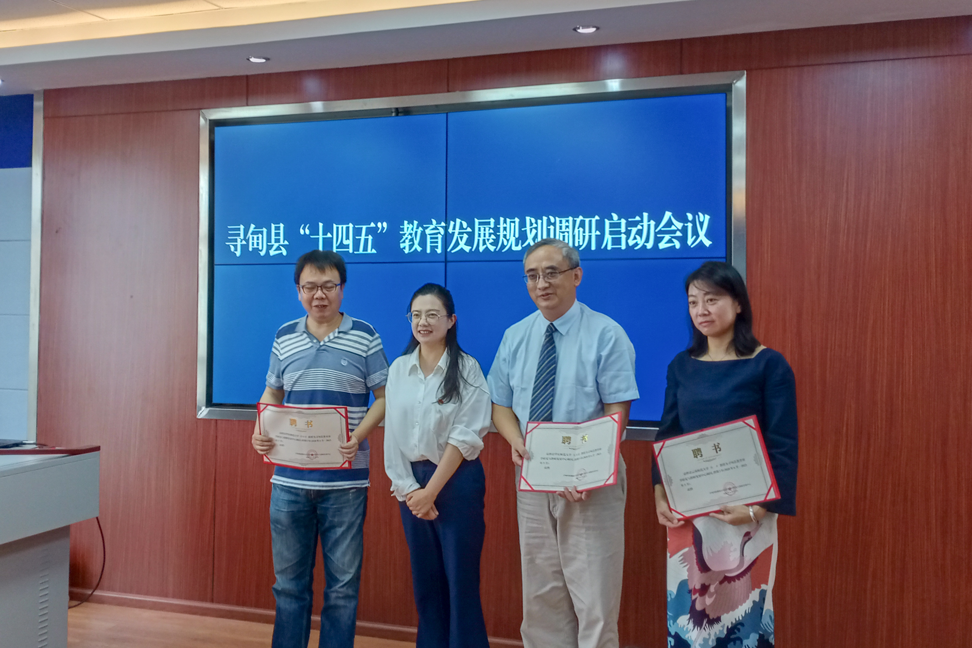 调研启动会上,范国睿教授、陈向东教授以及项目组特邀成员、云南师范大学对外合作与发展办公室主任尚云教授被聘为寻甸县教育研究与教师发展中心顾问,寻甸县副县长、县教育党工委书记龙晶晶为三位教授颁发了聘书。