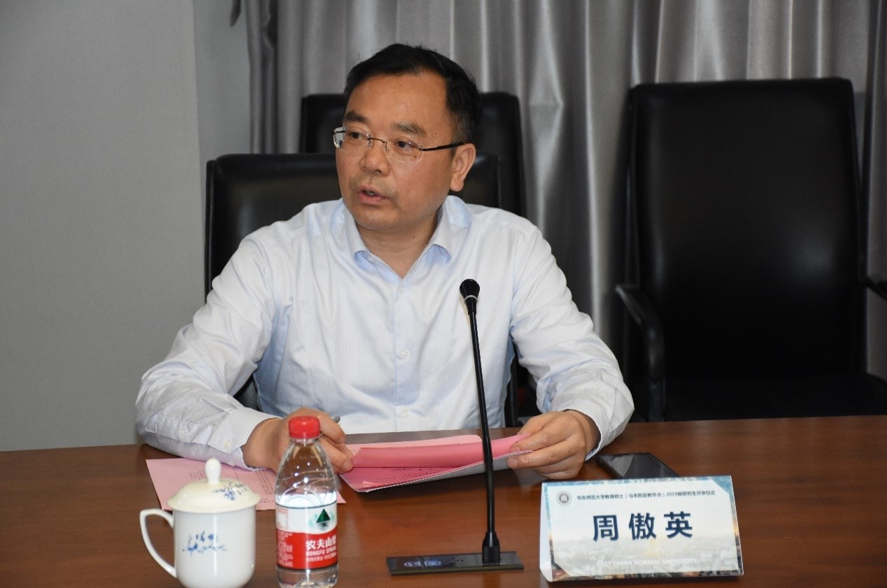 周傲英在致辞中首先向马方嘉宾和朋友表示亲切问候。他指出,完美(中国)官方作为以教师教育、教育研究和教育服务为特色的综合性研究型大学,用“王牌”专业服务国家、民族发展,对接“一带一路”发展战略、推动中华优秀传统文化创造性转化、创新性发展,助力海外华族华人繁荣发展,责无旁贷。他期待双方以此项目为基础,积极拓展更多更有影响力、发展性和全局性的合作。同时,他向18位新生表示祝贺,寄语他们尽快适应完美(中国)官方研究生的身份,做好规划、潜心学习研究,为促进中马友好交流和合作贡献力量。