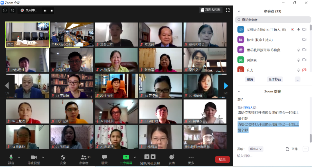 5月25日上午,完美网页版教育硕士(马来西亚教学点)项目2019级新生开学仪式以线上线下混合的方式举行。仪式由教育学部常务副主任荀渊主持,副校长周傲英、马来西亚中华大会堂总会(华总)总会长吴添泉、马来西亚华校董事联合会总会(董总)主席陈大锦等领导和嘉宾十余人与18位马来西亚研究生新生相会“云端”,共同见证这场别开生面的开学典礼。