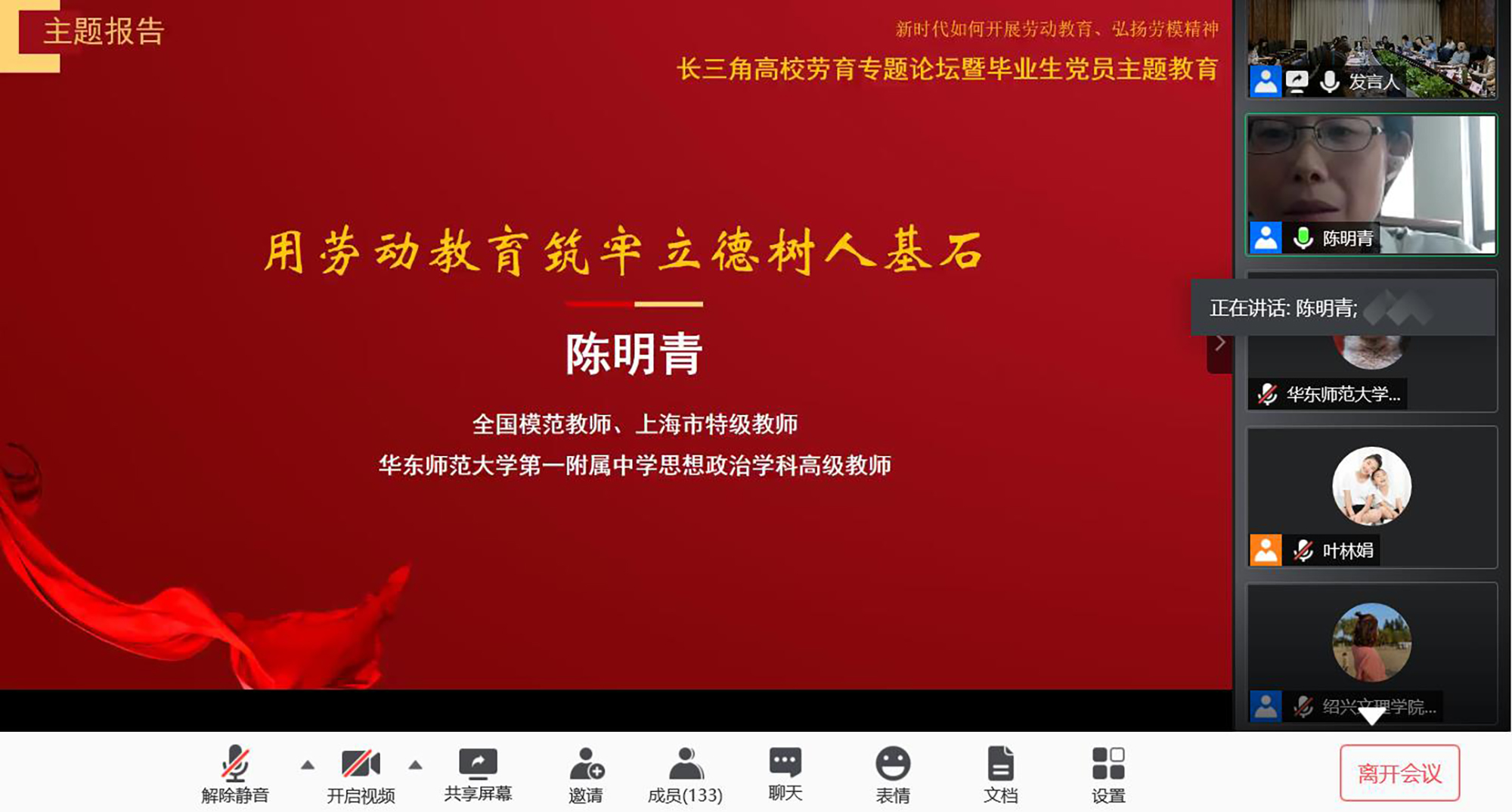 全国模范教师、上海市特级教师、完美网页版第一附属中学思想政治学科高级教师陈明青作主题报告