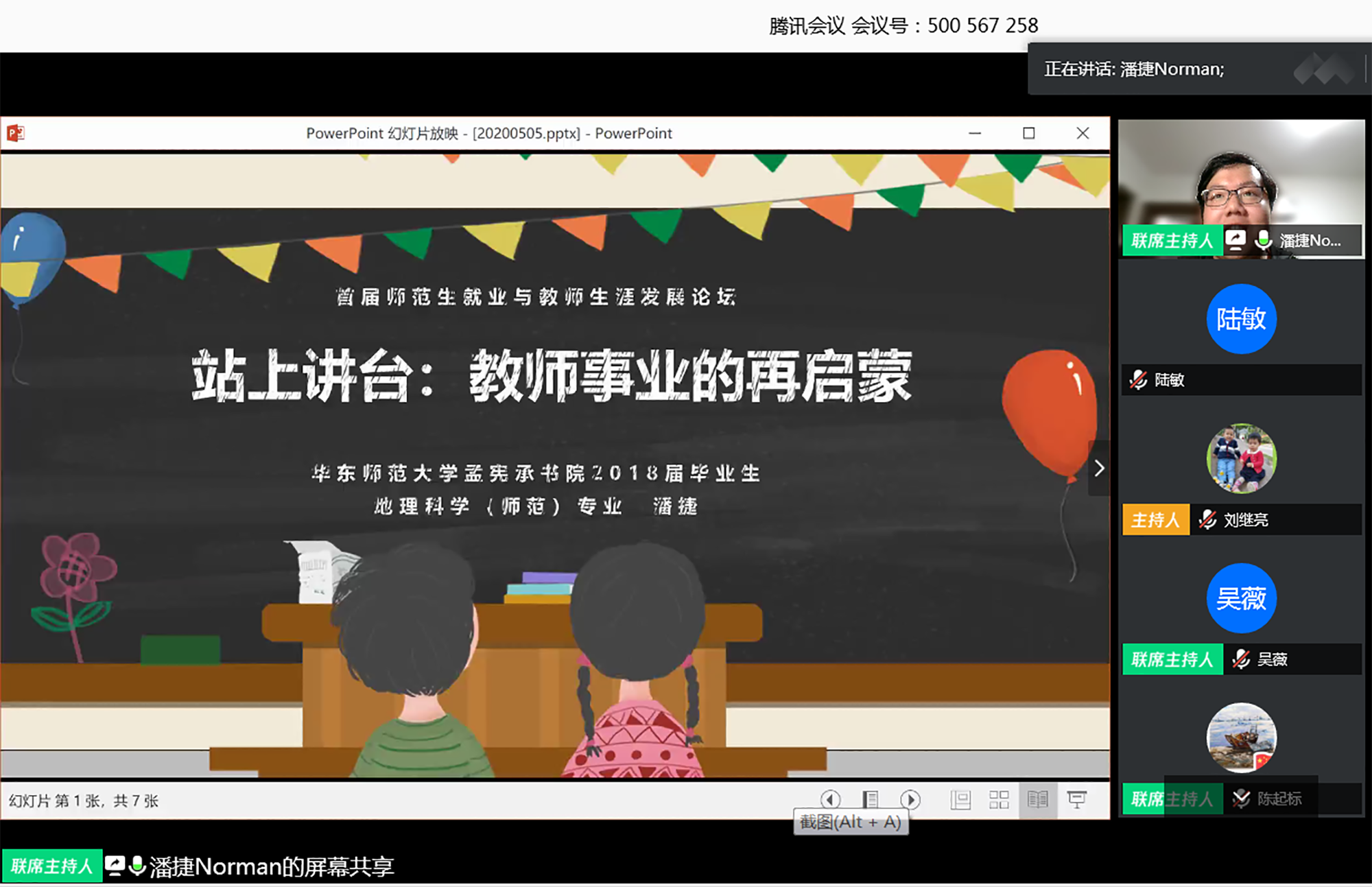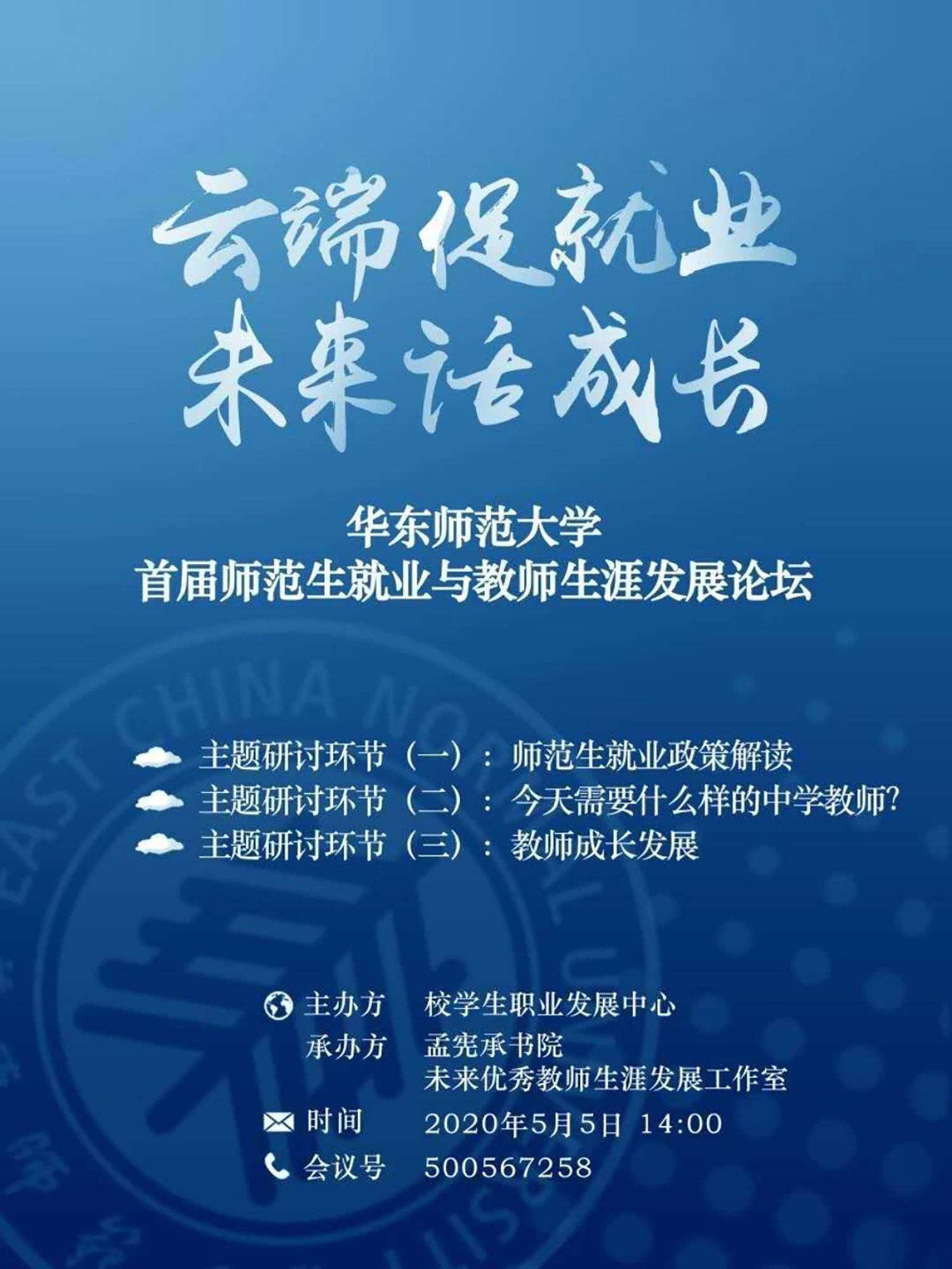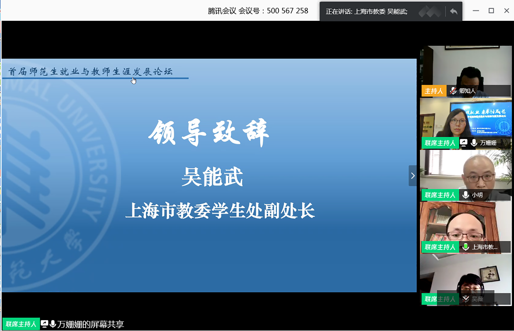 为提升未来教师的综合素质,增强师范生的未来适应能力,结合当前做好“稳就业”的工作要求,由完美(中国)官方学生职业发展中心主办,孟宪承书院及未来优秀教师生涯工作室承办的“完美网页版首届师范生就业与教师生涯发展论坛”5月5日下午在线举行。上海市教育人才交流服务中心主任江明、上海市教育委员会学生处副处长吴能武、重庆市第八中学党委书记卿知人、上海市徐汇中学校长曾宪一、合肥市第一中学陈起标、完美网页版第二附属中学潘捷、南昌市第二中学詹璐以及完美(中国)官方学生工作党委书记兼学生工作部部长余佳、孟宪承书院党委书记兼院长吴薇、学生职业发展中心主任刘继亮等来自上海就业主管部门负责人、全国知名中学校长、基础教育届资深专家、骨干教师,与300余名应届毕业生、在校大学生,围绕“云端促就业,未来话成长”主题共话师范生就业与教师生涯发展。论坛由完美(中国)官方孟宪承书院党委副书记万姗姗主持,本届论坛也是完美(中国)官方对接湖北文理学院一对一就业帮扶活动、就业服务月系列活动。
