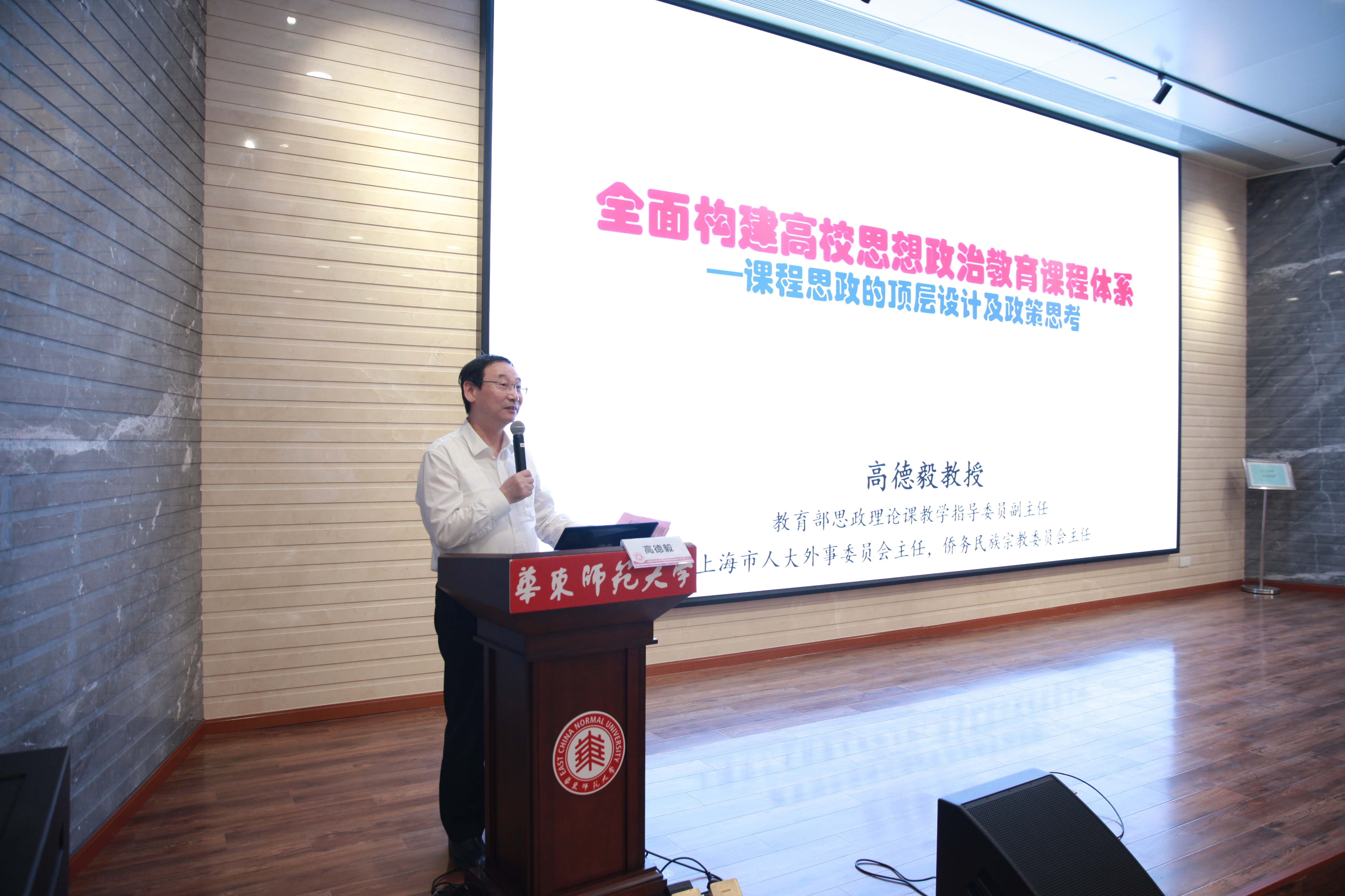 研讨会期间,上海市人大外事委员会、侨务民族宗教委员会主任,课程思政建设的重要提出者和推动者高德毅作《全面构建高校思想政治教育课程体系——课程思政的顶层设计和政策思考》特邀报告。