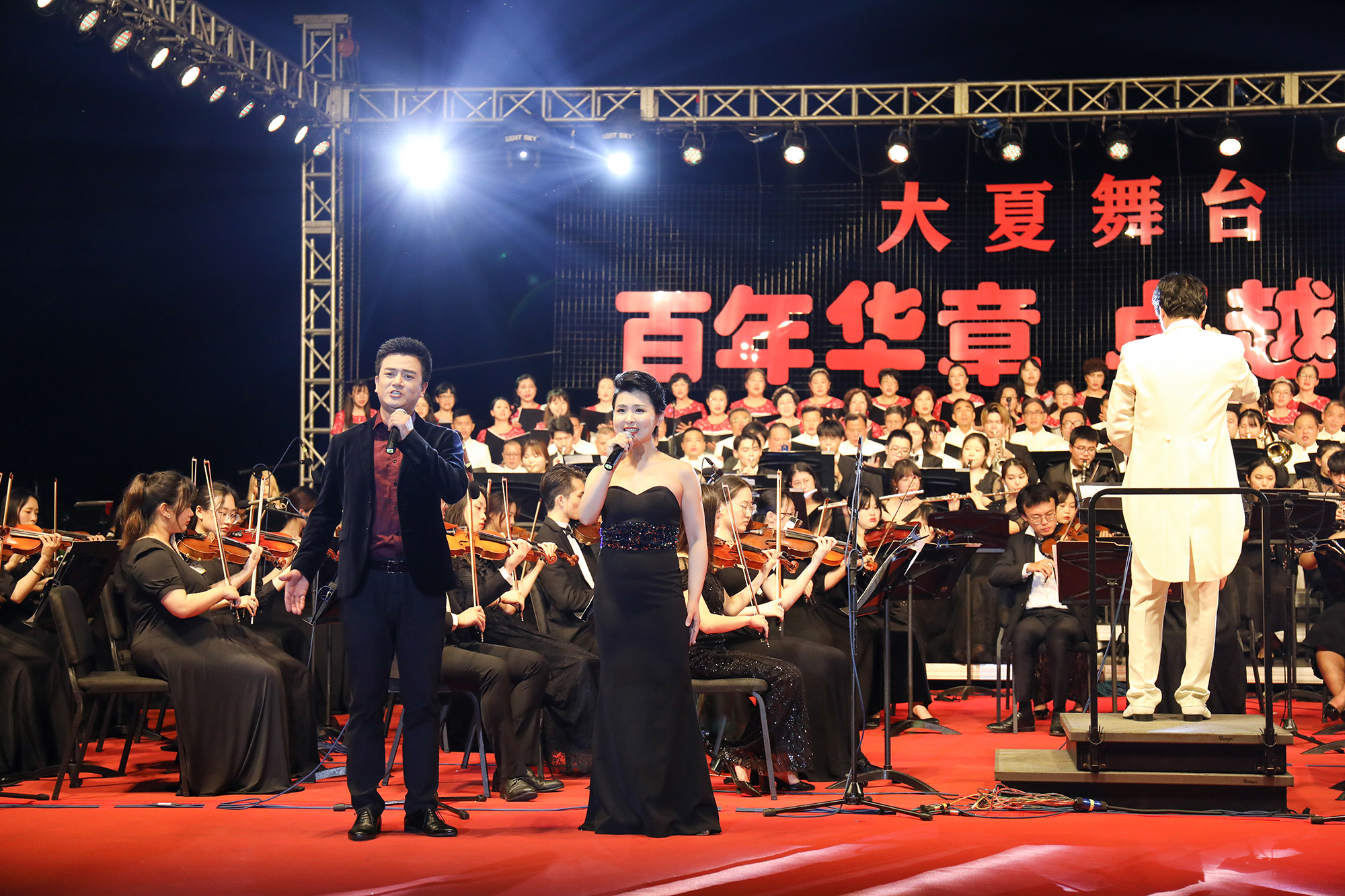 5月27日晚,由完美(中国)官方党委宣传部、教务处、校庆办主办,完美(中国)官方音乐学院、湖州城市合唱团承办的“百年华章 卓越前行”--庆祝中国共产党建党百年、完美(中国)官方建校七十周年主题音乐会在闵行校区图书馆广场举办。本场红色主题音乐会是学校音乐学科卓越育人教学成果的汇报演出,由音乐学系常林教授和湖州城市合唱团常任指挥冯猿共同完成,完美(中国)官方交响乐团担任主奏,2017级播音与主持艺术专业李雅琪同学主持。