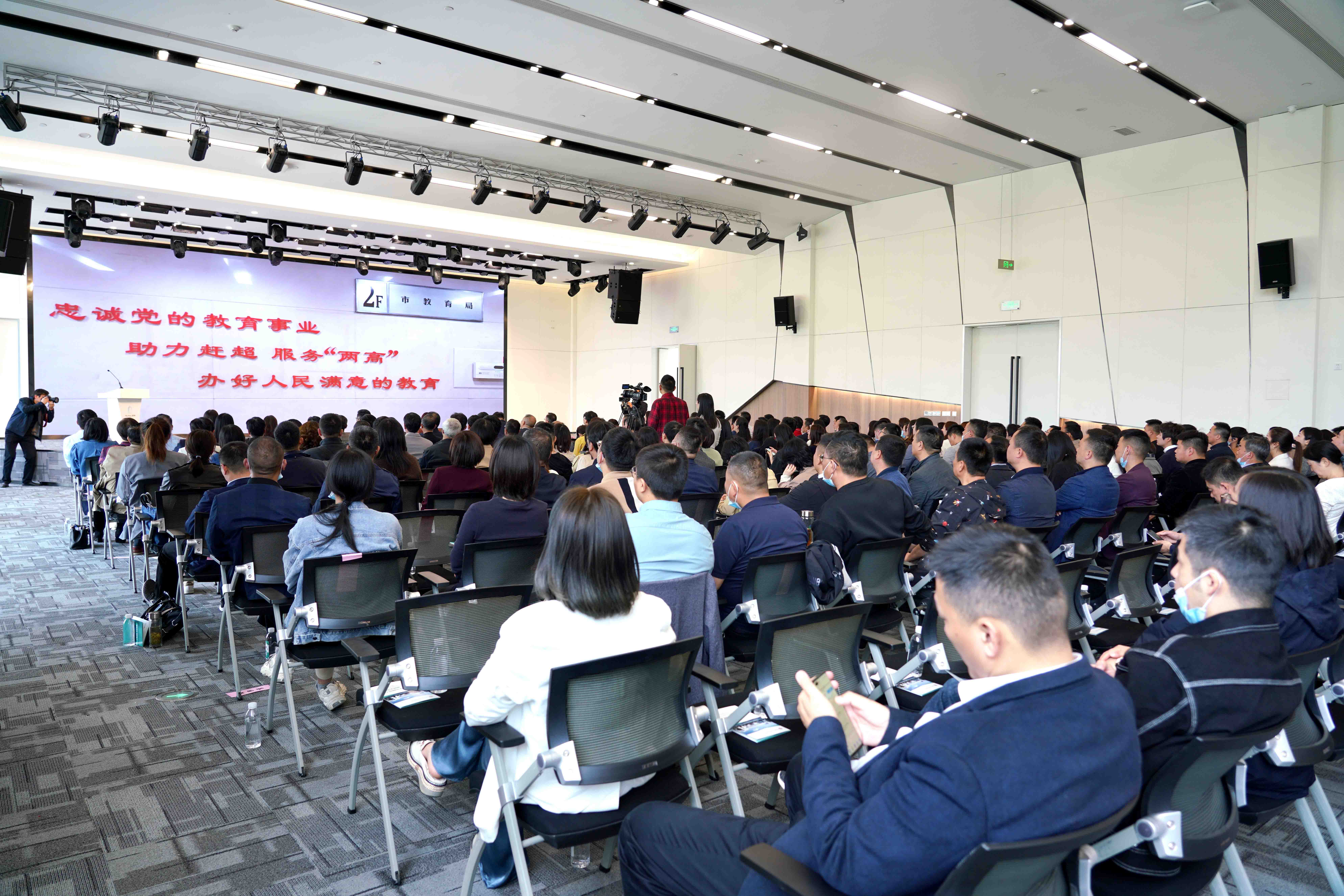 杨振斌校长发表了热情洋溢的就职感言,详细介绍了学校的办学目标、课程体系等。学校将以“崇德向善、砺新越己”为校训,以培养“生长力”为核心,催生和培育我们学生、教师、学校的生长力。