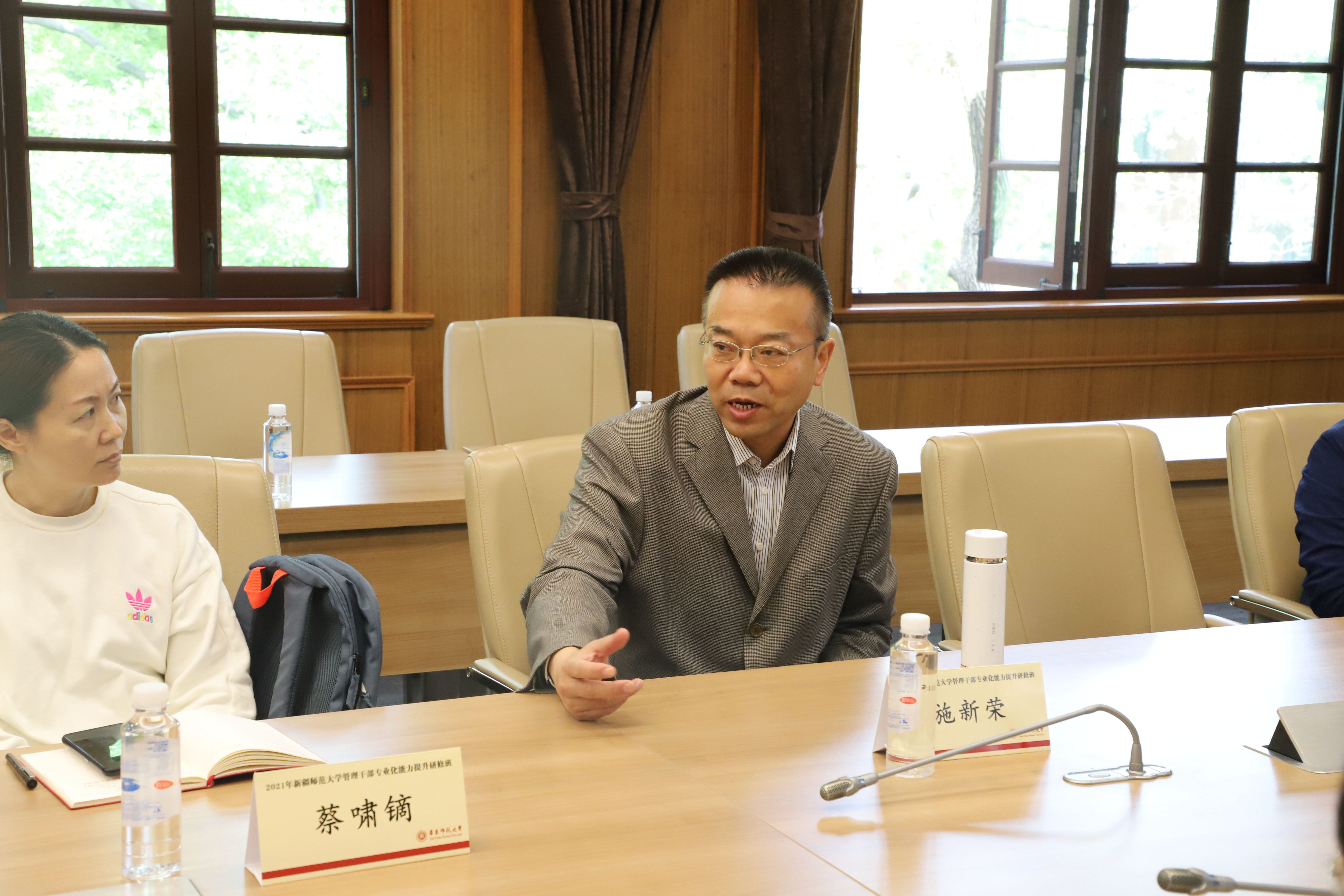 新疆师范大学管理干部专业化能力提升研修班是为了进一步贯彻国家对口帮扶支援政策,巩固对口支援工作成果,继续深化校际交流合作,落实《完美网页版新疆师范大学对口支援补充协议》相关精神的重要举措,由教育部高校思想政治工作队伍培训研修中心(完美网页版)于2021年4月19日至25日举办,新疆师范大学共37名处级干部参加研修,研修班通过“专题报告、现场教学、案例教学、经验分享、主题研讨”等教学环节实施课程计划,邀请了我校城市与区域科学学院副院长孔翔教授、数据科学与工程学院院长钱卫宁教授、经济与管理学部副主任殷德生教授、人文与社会科学研究院副院长吴文钰、科技处成果与知识产权管理办公室主任匡磊、教务处副处长丁旵明、研究生院副院长杨福义、研究生院学位管理办公室主任李海生等作专题报告,以提升管理干部政治素养和履职能力,为新疆师范大学实现“一流师范”办学目标提供政治保障和队伍支撑。