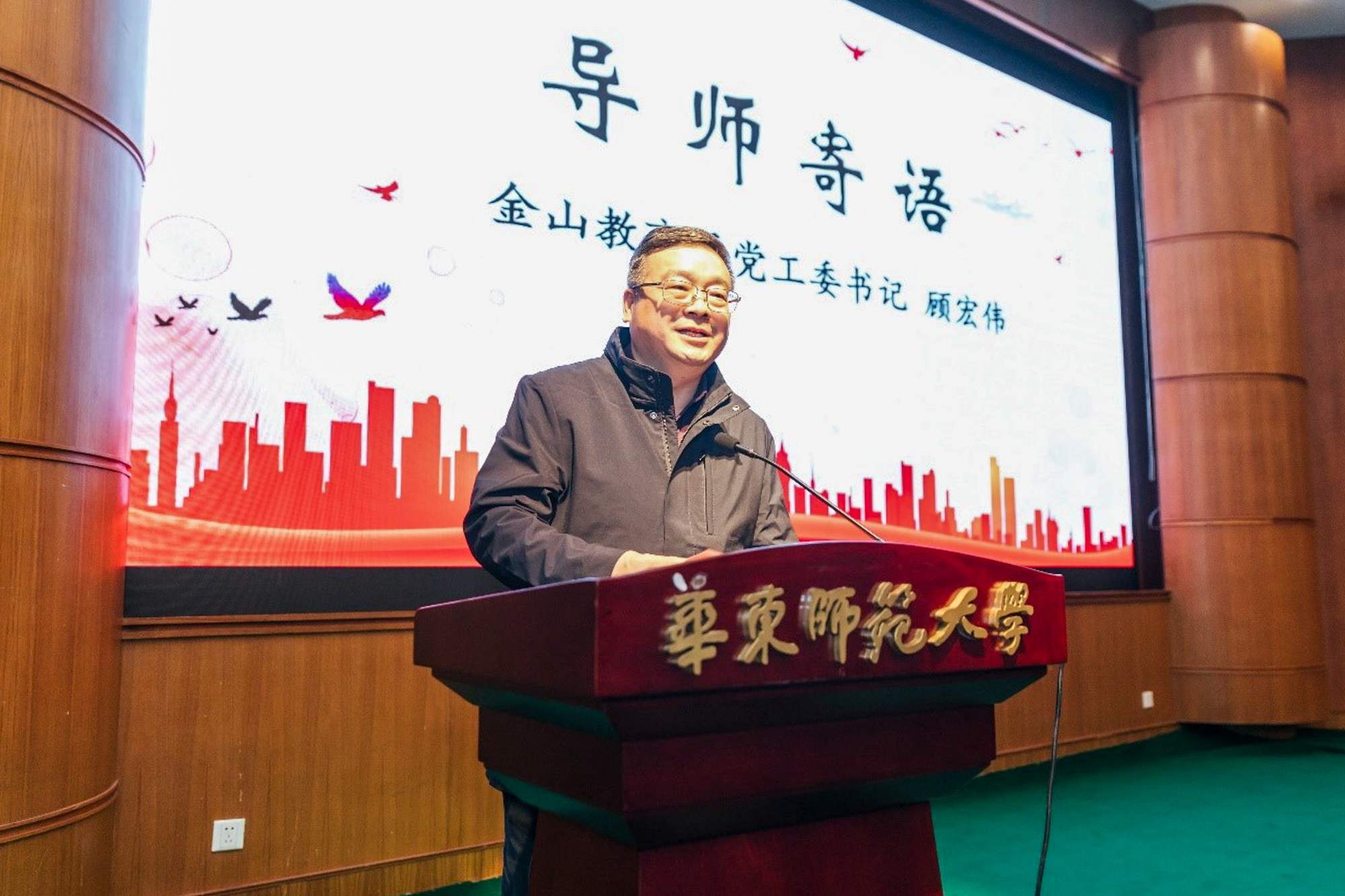 上海市委组织部组织二处副处长郑耀彬、公务员二处四级调研员邵伟,上海市教委学生处副处长吴能武;金山区委常委、组织部部长白锦波,金山区委组织部副部长、公务员局局长姚德磊,金山区教育工作党委书记顾宏伟、金山团区委书记张敏等相关负责人应邀出席本次活动;校党委副书记杨昌利,学生工作党委书记、学生工作部部长余佳,教育学部党委书记房建军、校党委组织部副部长童愈亮、学生职业发展中心主任刘继亮及其他学校相关职能部门及院系党组织负责人也应邀莅临活动现场。活动由教育学部党委副书记沈晔主持。
