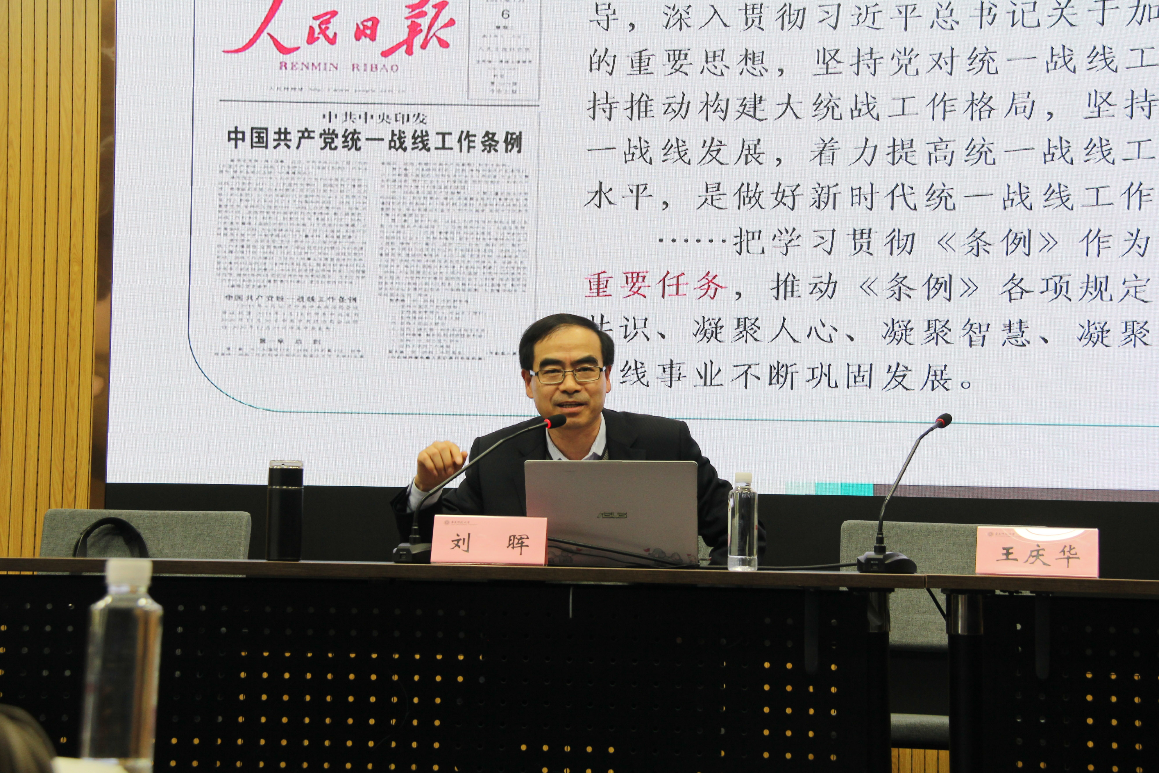 刘晖主任作“深入学习《中国共产党统一战线条例》”报告